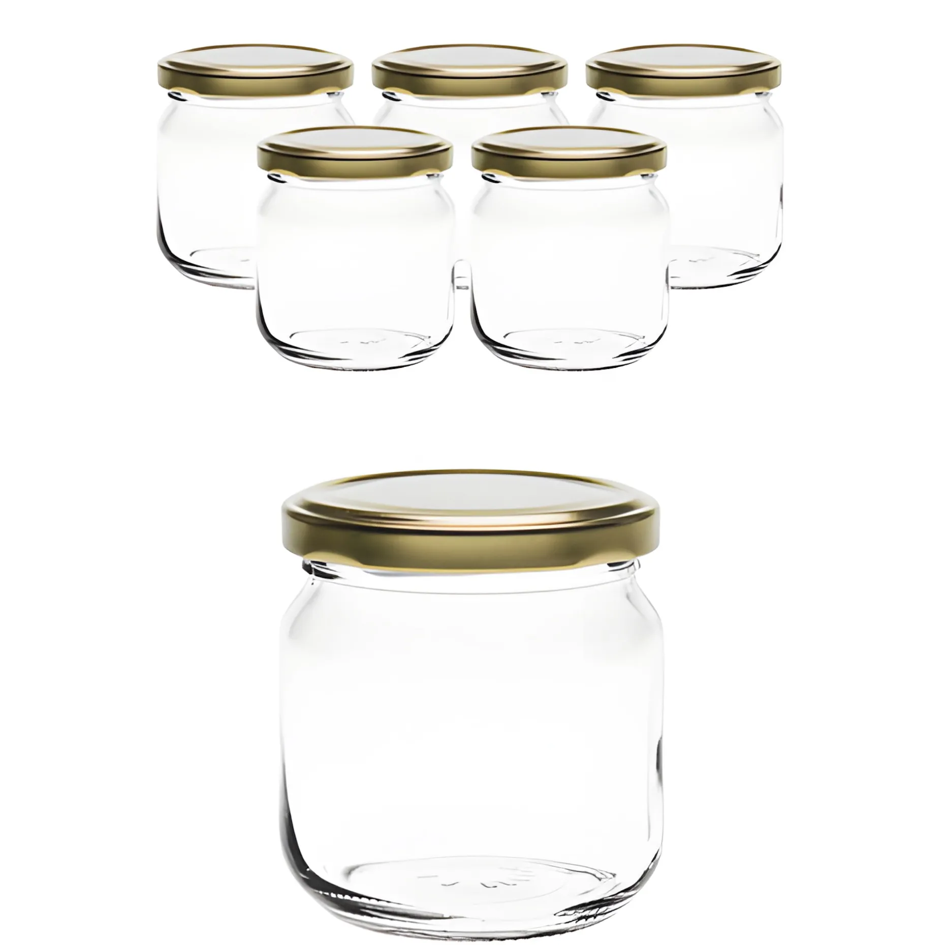 Informationen zum Artikel: 6er Set Rundglas 212 ml nieder mit Deckel gold