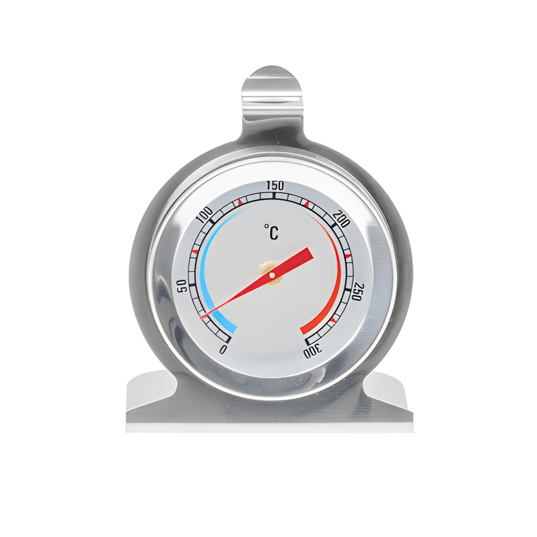 Das Küchenthermometer hat eine übersichtliche Ableseskala mit einem großen Ziffernblatt und klaren blauen und roten Zonenanzeigen, sodass Sie die Ofentemperatur leicht ablesen können. Der Messbereich liegt zwischen 0 °C und 300 °C. Es hat einen stabilen Fuß und einen Haken und kann sowohl am Rost oder Backblech eingehängt als auch im Ofen aufgestellt werden.