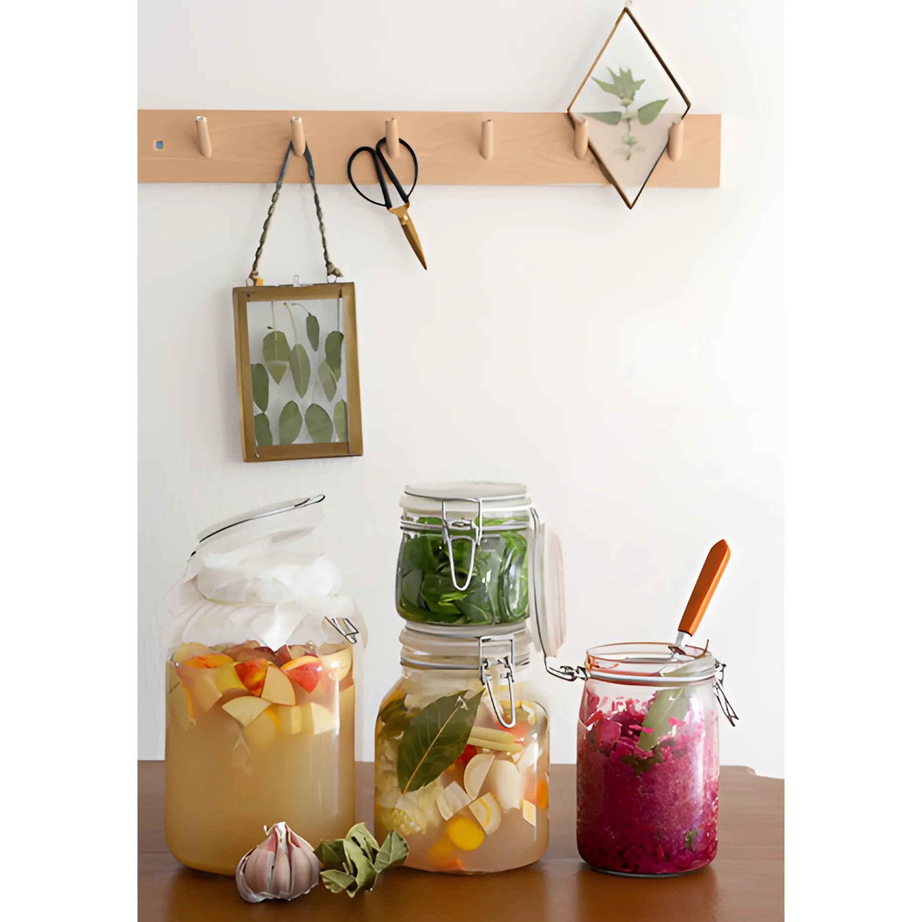 Praktisches Set mit Bügelgläsern in 4 verschiedenen Größen, inklusive Etiketten. Inspiriert durch Syl Gervais, deren Leidenschaft es ist, Gemüse und Obst durch Fermentation haltbar zu machen. Milchsauer vergorenes Gemüse, selbst hergestellte Essige, probiotische Getränke und Aufstriche sind nicht nur lecker, sondern fördern auch unsere Darmgesundheit. Ob klassisches Sauerkraut, buntes Gemüse, Essig aus Apfelresten oder Erdbeeren, Wasserkefir, Kombucha, Shrub oder Kimchi – Gemüse, Obst und deren Bakterien gehören in gute Gläser gepackt. Bügelgläser eignen sich besonders gut zum fermentieren und so hat Syl ein individuelles Set zusammengestellt, das perfekt auf ihre Fermentations-Kurse zugeschnitten ist. Natürlich eignen sich die Gläser auch für alle anderen Arten des Einlegens und Vorrathaltens.
