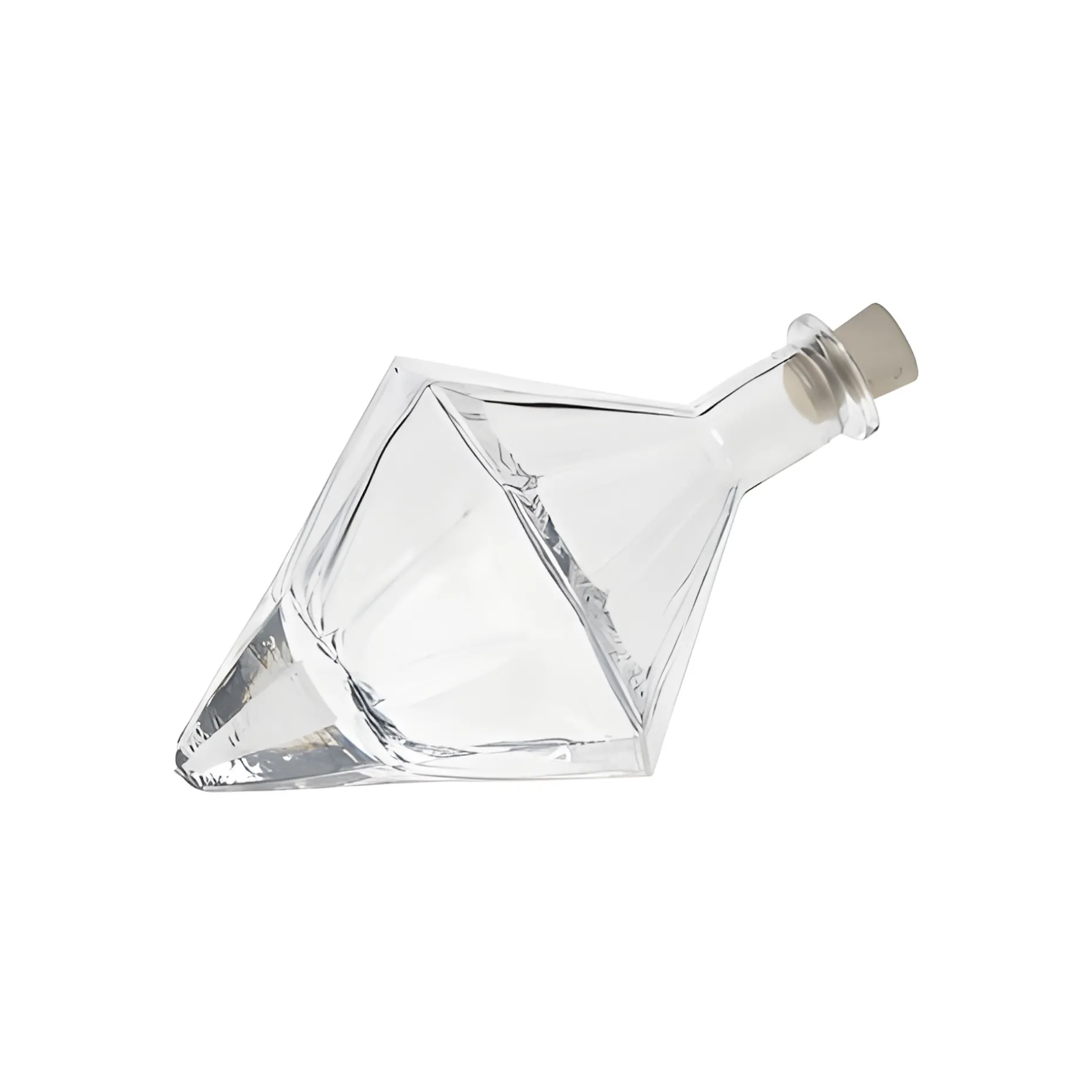 Diese dekorative Glasflasche in Diamantform ist ein außergewöhnliches Schmuckstück, das facettenreich ausgearbeitet ist und liegend präsentiert wird. Die spezielle Form macht diese Flasche zum perfekten Gefäß für Essig und Öl, aber auch für Likör, Sirup und andere Köstlichkeiten. Ein wunderschönes Geschenk für besondere Gelegenheiten und eine Augenweide für Ihr Zuhause.