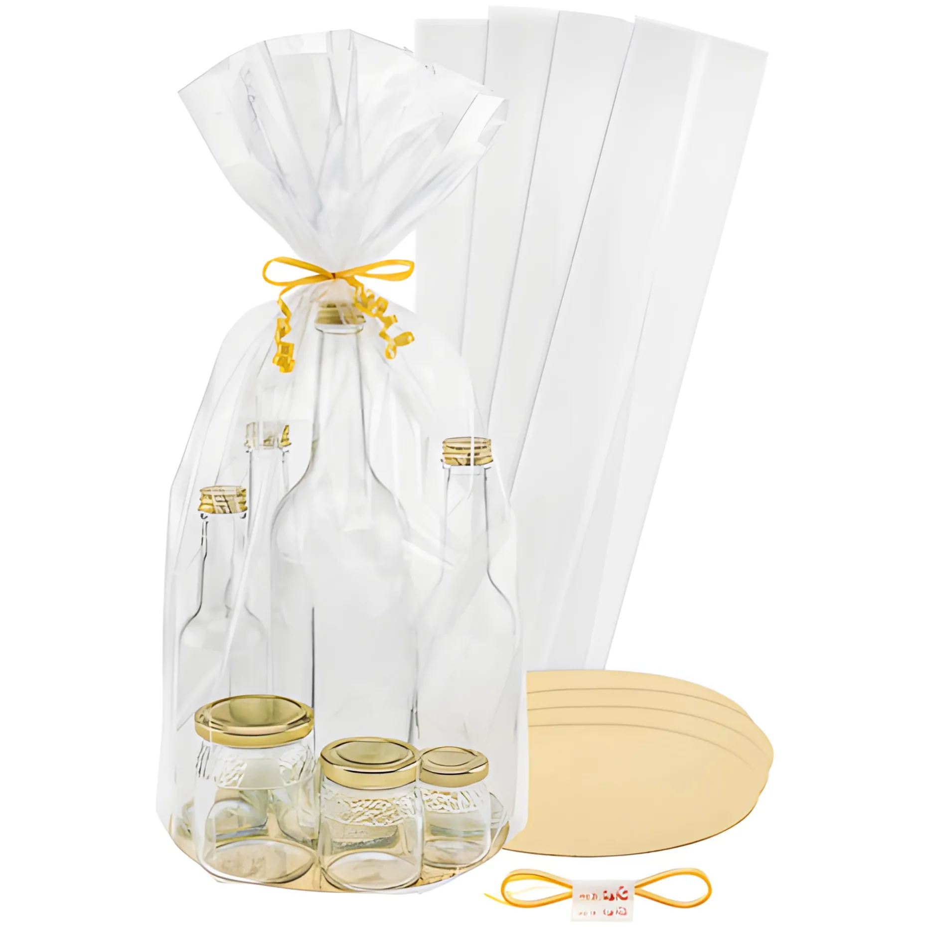 Das umständliche Verpacken in Folie hat endlich ein Ende. Mit dem hochtransparenten, achteckigen Diamantbeutel der Marke Exclusive Bag können Sie einfach die beiliegende Kartonscheibe entweder mit der goldenen oder silbernen Seite nach oben einlegen und dann den Beutel nach Belieben befüllen. Vielleicht mit einem Ensemble aus einem selbstgemachten Likör, etwas Gebäck und passender Deko, einem Spielzeug und Schokolade oder einem ansprechendem Arrangement für eine Hochzeit, ein Jubiläum oder jeglichen anderen Anlass. Je nach Höhe und Durchmesser des Beutels kann sogar ein ganzer Präsentkorb in einem Diamantbeutel Platz finden.