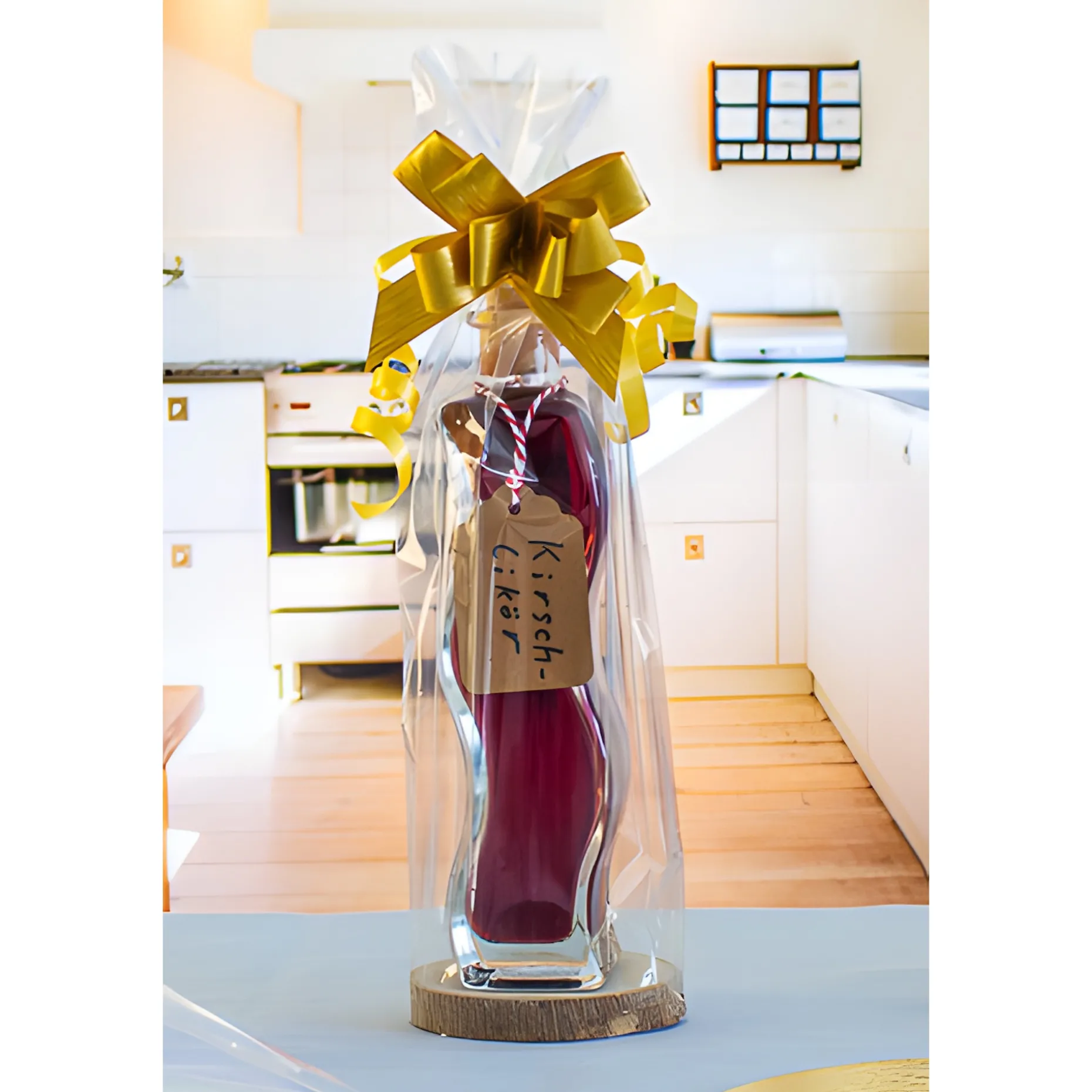Mit diesen Diamantbeuteln der Marke Exclusive Bag gibt es kein umständliches Einpacken in Folie mehr. Durch ihre achteckige Form können z. B. Flaschen einfach hineingestellt und mit einer hübschen Schleife verpackt werden. Diese Beutel eignen sich wunderbar zum Verpacken von selbstgemachten Likören, Schnäpsen oder auch Saucen. Die Größe 42 x 360 mm ist verwendbar für übliche 0,25 bis 0,5 l Flaschen (bis zu einem Durchmesser von 75 mm). Auch Marmeladengläser mit entsprechenden Durchmessern können in diesen Geschenkbeuteln wirkungsvoll verpackt werden.