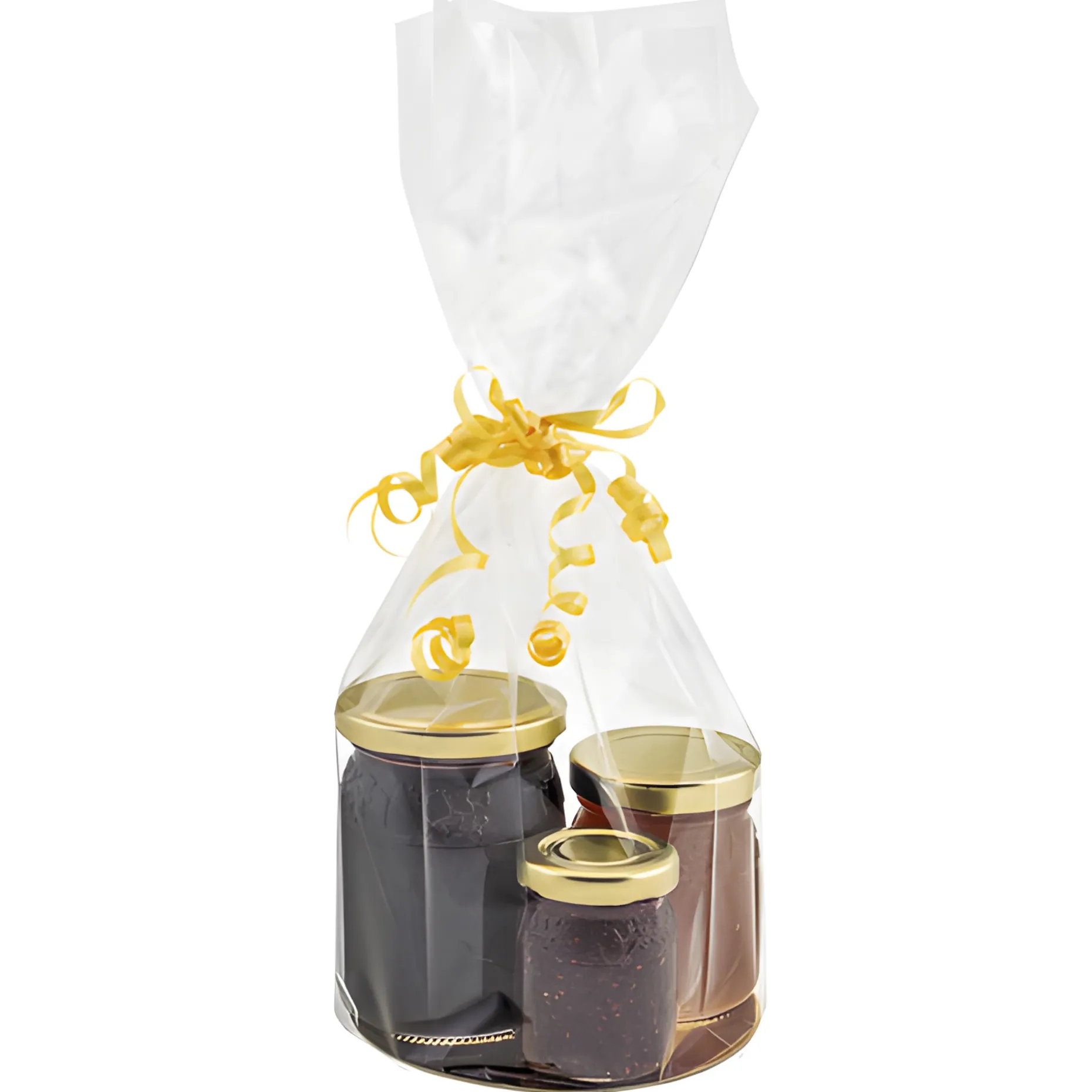Das umständliche Verpacken in Folie hat endlich ein Ende. Mit dem hochtransparenten, achteckigen Diamantbeutel der Marke Exclusive Bag können Sie einfach die beiliegende Kartonscheibe entweder mit der goldenen oder silbernen Seite nach oben einlegen und dann den Beutel nach Belieben befüllen. Vielleicht mit einem Ensemble aus einem selbstgemachten Likör, etwas Gebäck und passender Deko, einem Spielzeug und Schokolade oder einem ansprechendem Arrangement für eine Hochzeit, ein Jubiläum oder jeglichen anderen Anlass. Je nach Höhe und Durchmesser des Beutels kann sogar ein ganzer Präsentkorb in einem Diamantbeutel Platz finden.