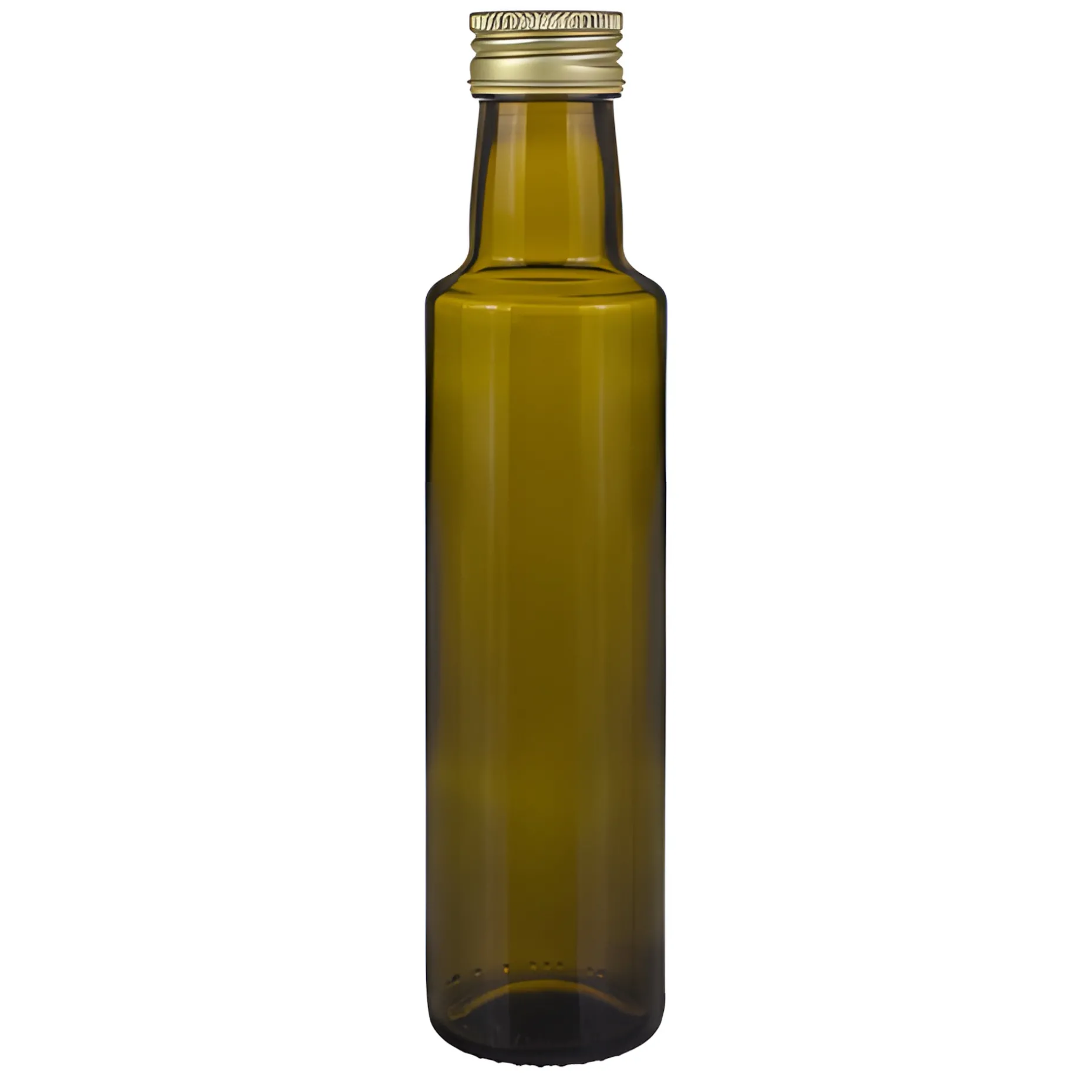 Schlanke Schraubflasche aus Antikglas für Öle, Kräuter und Sirup. Die ‚Dorica light‘-Flasche überzeugt vor allem durch ihr leichtes Gewicht und ist im Gegensatz zu der ‚Dorica 250 ml antik‘ etwas kleiner. Das dunkle Glas eignet sich besonders gut für lichtempfindliche Flüssigkeiten, wie z. B. aromatisiertes Öl, feine Essenzen und selbstgemachte Würzsoßen. Mit einer Füllmenge von 250 ml ist die Ölflasche aus der Dorica-Serie zudem eine ideale Essig- und auch Saftflasche, die mit einem schönen Verschluss und einer hübschen Deko zu einem tollen Mitbringsel wird.