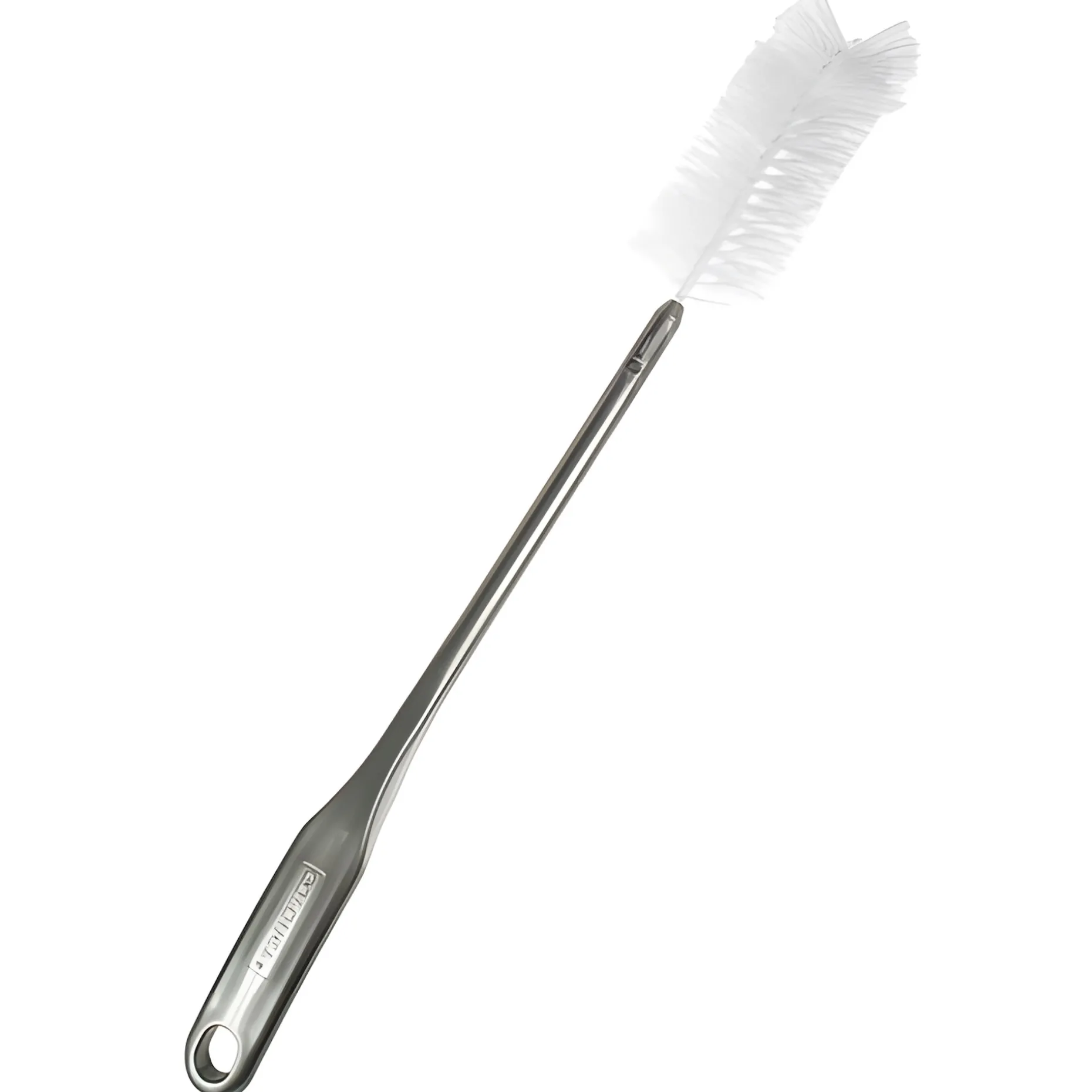 Durch den festen Stiel kann die Bürste durch den Hals gepresst werden, wodurch dieser gleichzeitig gereinigt wird. Im Flaschenkörper stellen sich die Borsten dann wieder gerade, sodass auch dieser gut gereinigt werden kann.