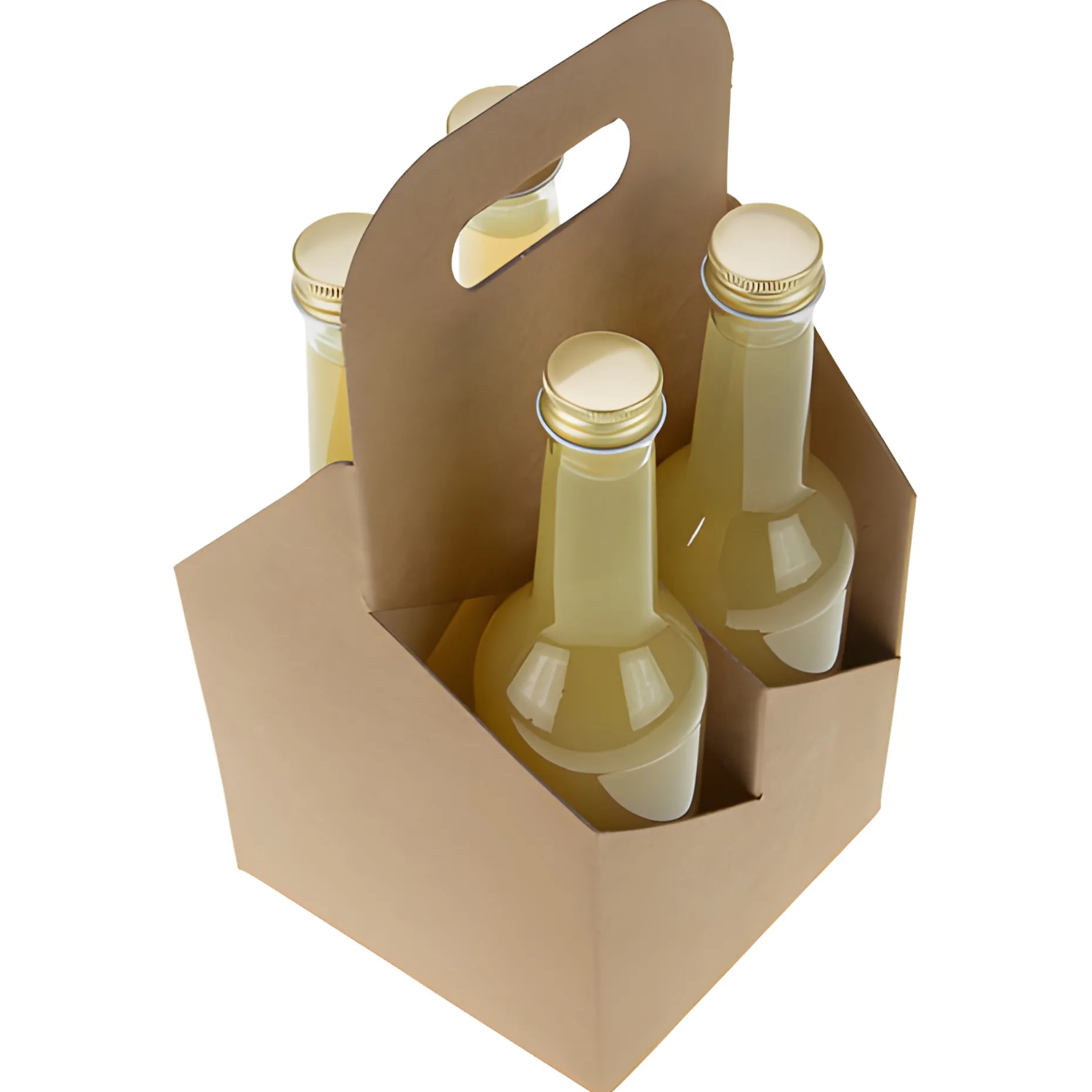 Dieser offene Flaschenkarton mit Tragegriff verwahrt vier mittelgroße Flaschen kompakt und stilvoll beim Transport. Durch den praktischen Faltmechanismus ist er in einem Handgriff einsatzbereit. Stege aus Karton sorgen für den sicheren Stand der Flaschen und verhindern im oberen Bereich ein Aneinanderstoßen. Aufgrund der klaren Linienführung und des stabilen, hochwertigen Materials eignet sich der Träger auch zur Produktpräsentation oder als Geschenkverpackung.
