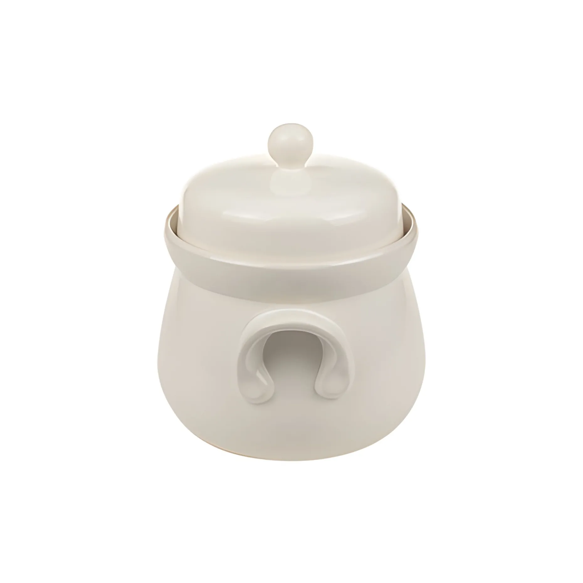 Mini-Gärtopf mit Deckel und Beschwerungssteinen zum Fermentieren. Der Sauerkrauttopf hat ein Fassungsvermögen von 2 Litern und ist aus cremefarbener Keramik. An der Öffnungsmündung des Topfes ist eine zusätzliche Vertiefung (Nut) angebracht, in die der Deckel eingesetzt wird. Mit dem passenden Deckel und den Fermentiersteinen haben Sie so alles zur Hand, um Sauerkraut, Kimchi und Salzgurken selbst herzustellen.