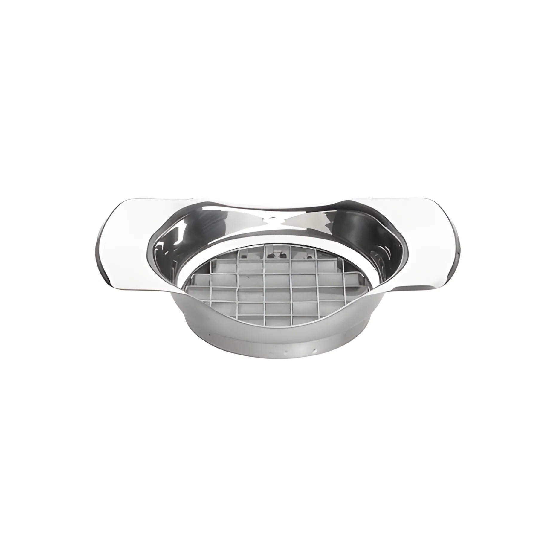 Mit diesem praktischen Gemüseteiler können Sie mühelos und schnell gleichmäßige Gemüsestifte schneiden. Er ist aus rostfreiem, robustem Edelstahl und gleicht von seiner runden Form her einem klassischen Apfelschneider. Statt der Spalten-Aufteilung hat der Gemüseschneider ein Teilungsgitter, welches das Gemüse in Stifte schneidet.