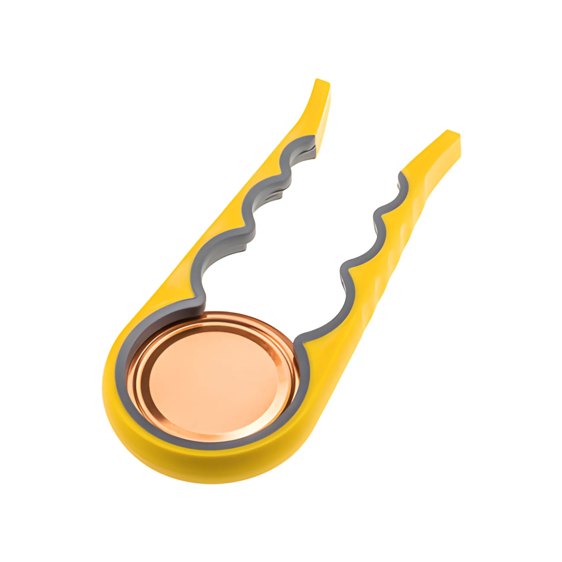Praktischer Deckelöffner für unterschiedliche Größen. Der handliche Glas- und Flaschenöffner macht das Aufmachen festsitzender Drehverschlüsse zum Kinderspiel. Einfach mit dem entsprechenden Auslass um den Deckel gelegt und schon lassen sich Gläser und Flaschen dank der Hebelwirkung ohne Kraftaufwand öffnen. Das stabile, aber dennoch flexible Kunststoffmaterial passt sich dem Deckel perfekt an, ohne dass er beschädigt wird.