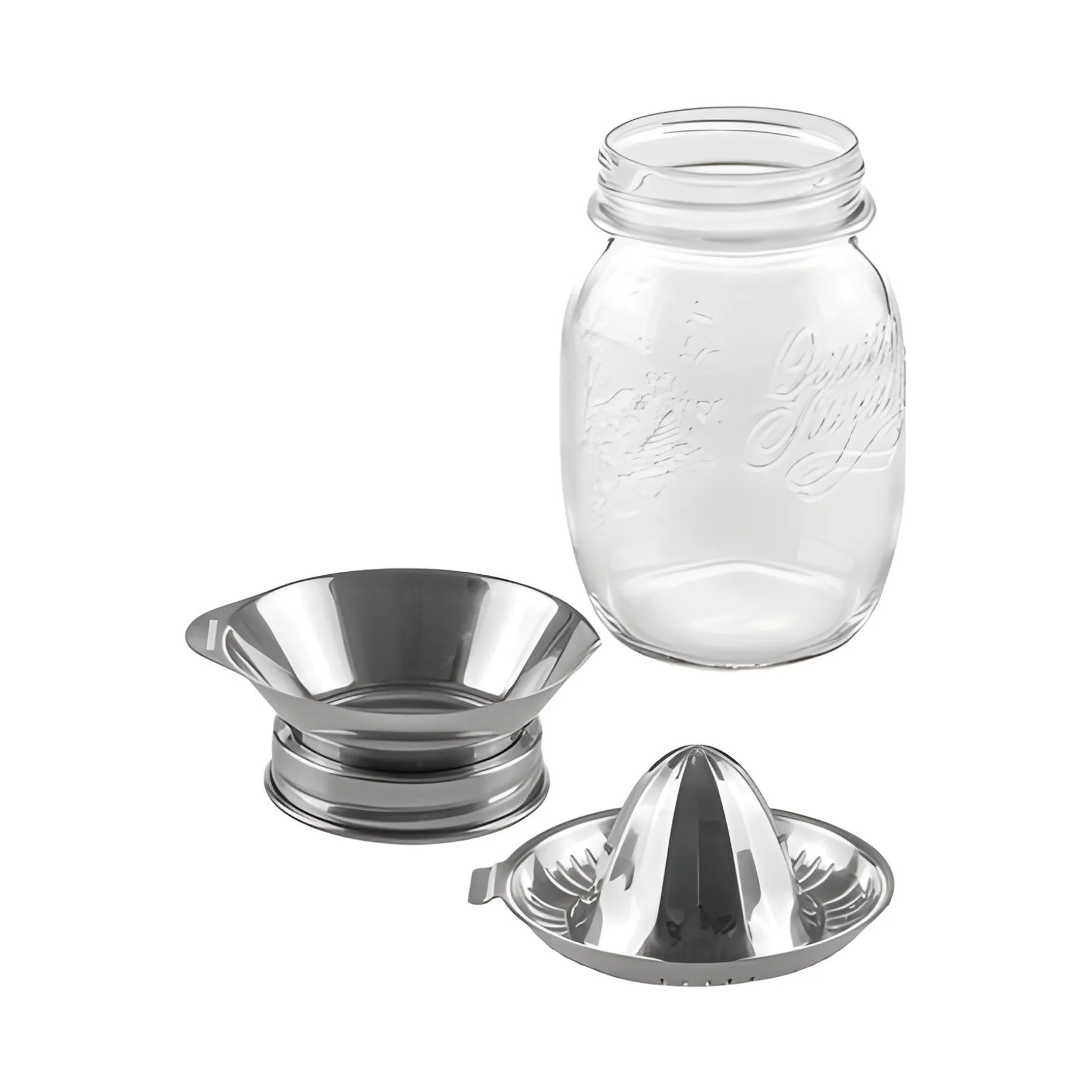 Frisch gepresster Orangensaft direkt ins Glas mit einer stilechten Saftpresse. Mit diesem Küchenhelfer können Sie den Saft einer Orange, Pomelo oder Grapefruit ganz einfach auspressen, den Schraubdeckel abnehmen und den Saft direkt aus dem Glas trinken.