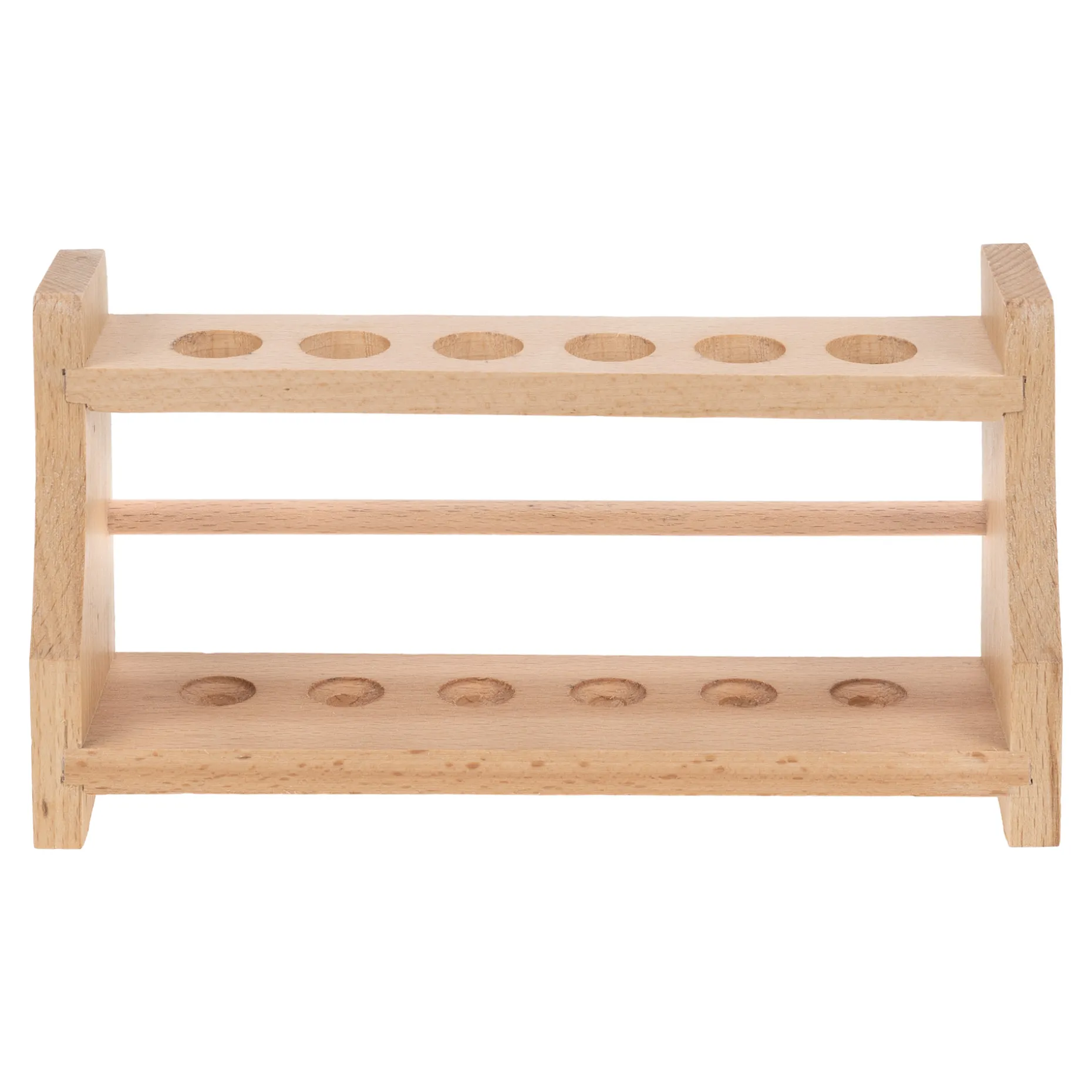 Traditionelles Holzgestell für 6 Reagenzgläser mit einem Durchmesser von 16 mm.