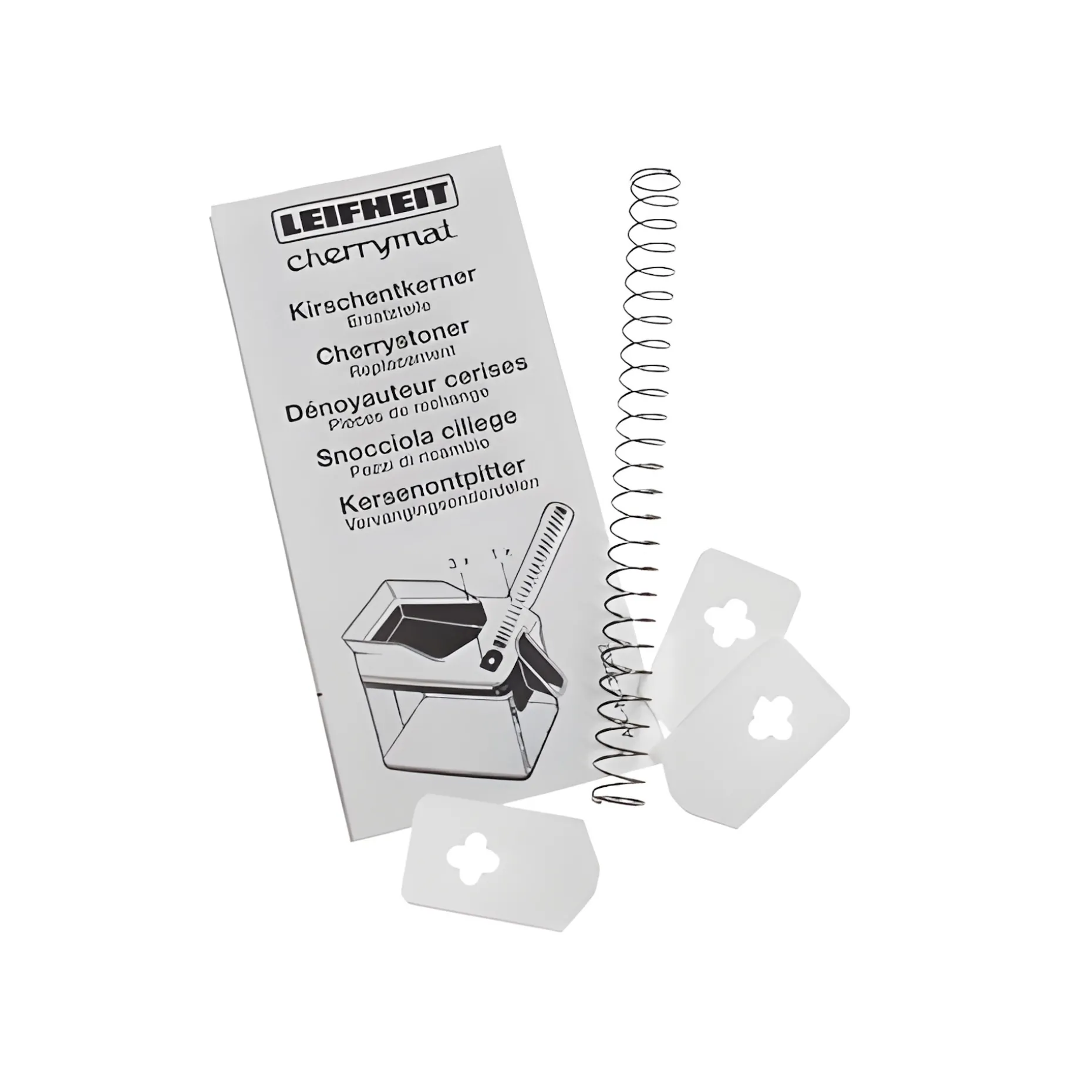 Ersatzteilsortiment mit 3 Abstreifgummis und einer Ersatzfeder für den Kirschenentkerner ‚Cherrymat‘ von Leifheit