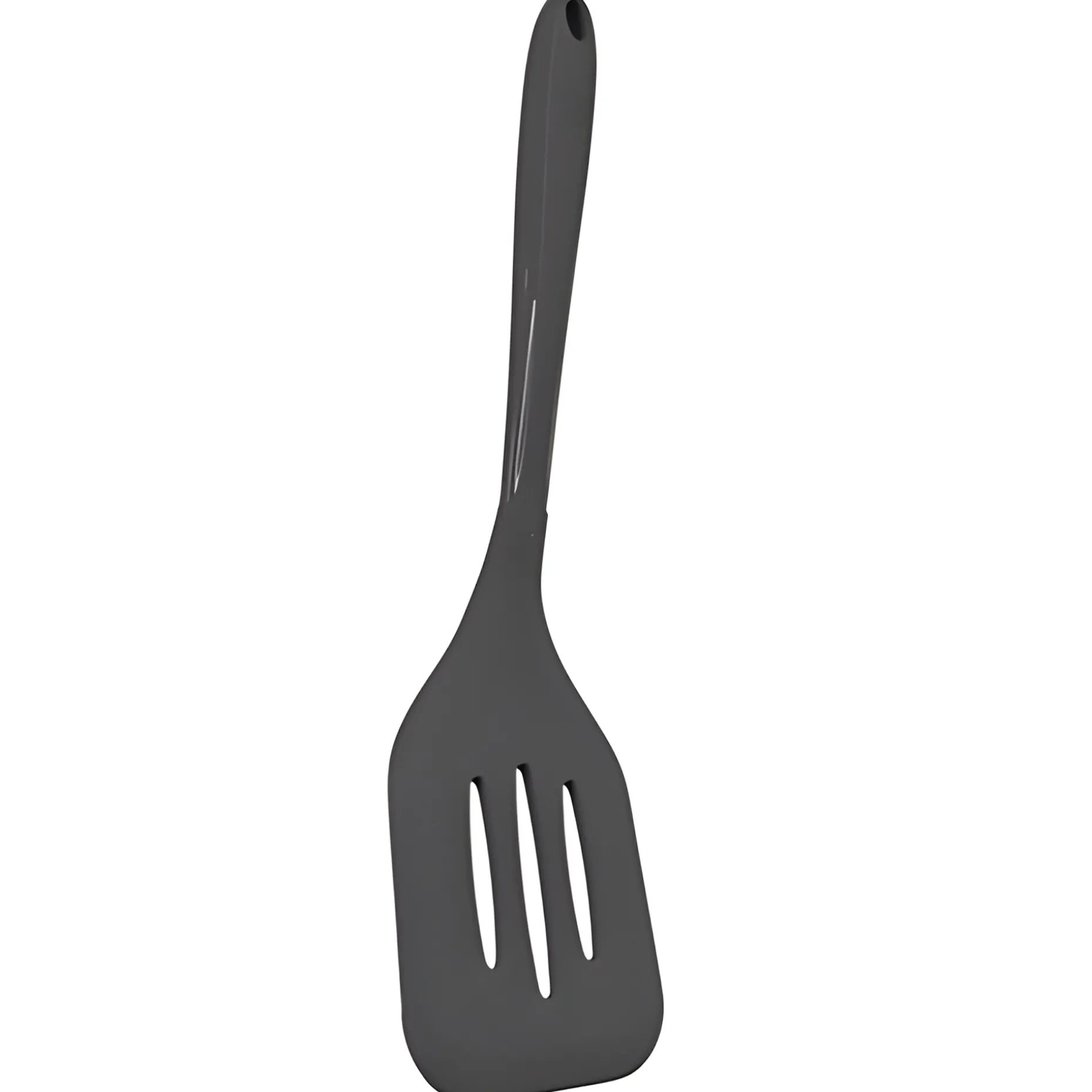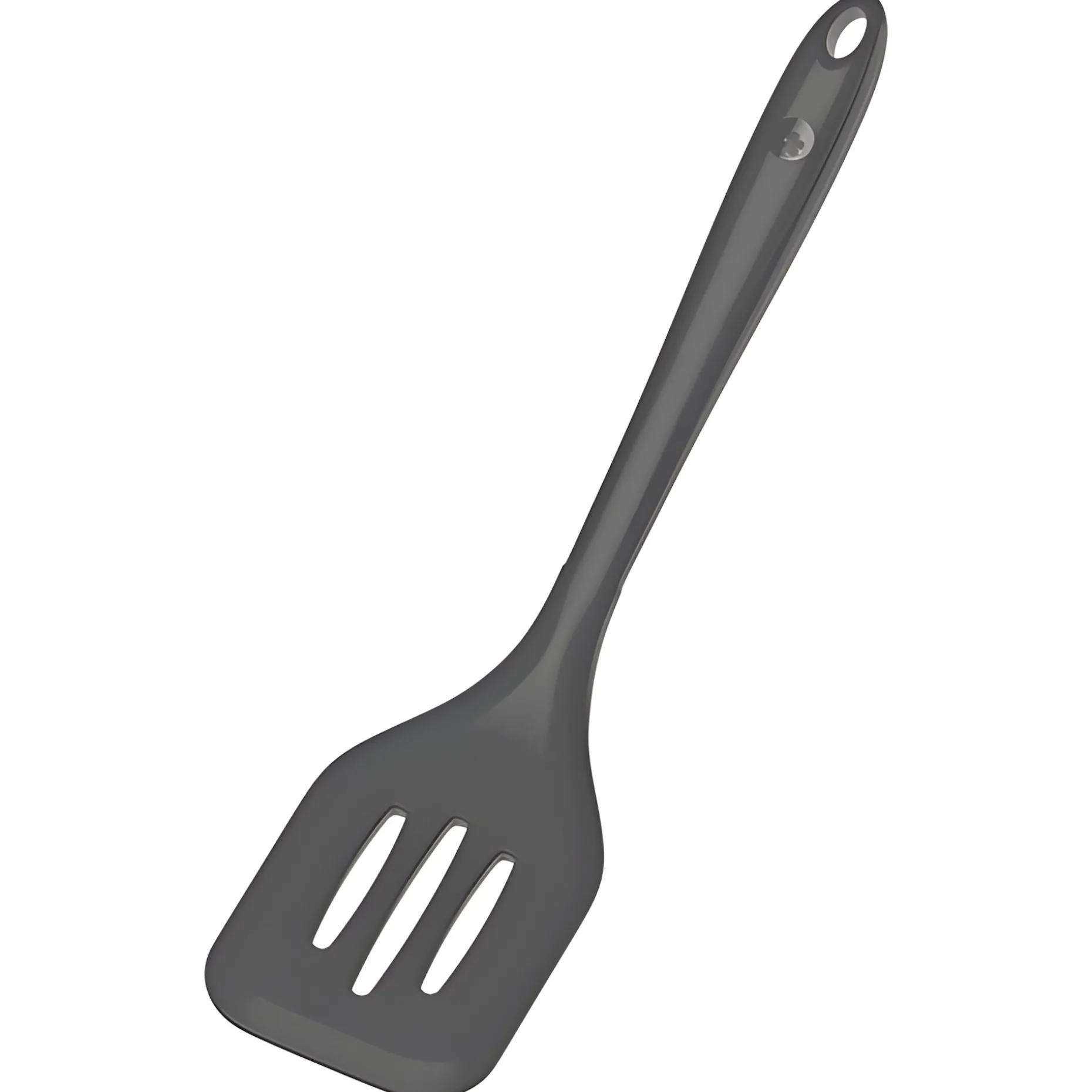 Die drei Schlitze des Silikonspatels verhindern, dass ungewollt größere Mengen an Fond oder Bratfett aus der Pfanne genommen werden, und bieten zusätzliche Flexibilität. Das lebensmittelechte Silikon ermöglicht es, den Schlitzspatel ohne Bedenken im Topf oder in der Pfanne liegen zu lassen, ohne dass man sich am Griff verbrennt. Der Griff hat ein Loch, an dem man den Flex-Wender in Anthrazit aufhängen kann, um ihn immer schnell zur Hand zu haben.