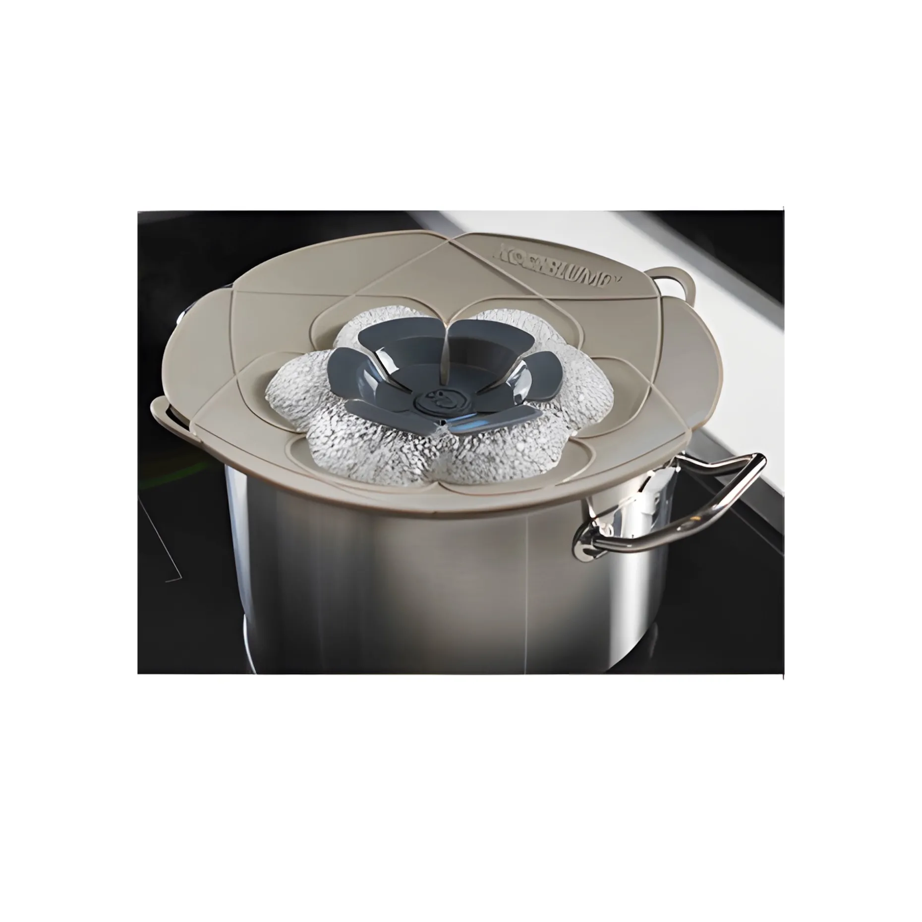 Mit diesem praktischen Überkochschutz von Kochblume kocht Ihnen garantiert nichts mehr über. Denn dieser geniale Spritzschutzdeckel aus Silikon verhindert das Überschäumen von Kochwasser bei Reis oder Pasta und auch von Milch. Einfach anstelle eines Topfdeckels auf den Kochtopf legen und schon wird aufsteigende Flüssigkeit oder Schaum durch die flexible Blüte in der Mitte aufgefangen und läuft durch die spezielle Form des Silikondeckels wieder in den Topf zurück.