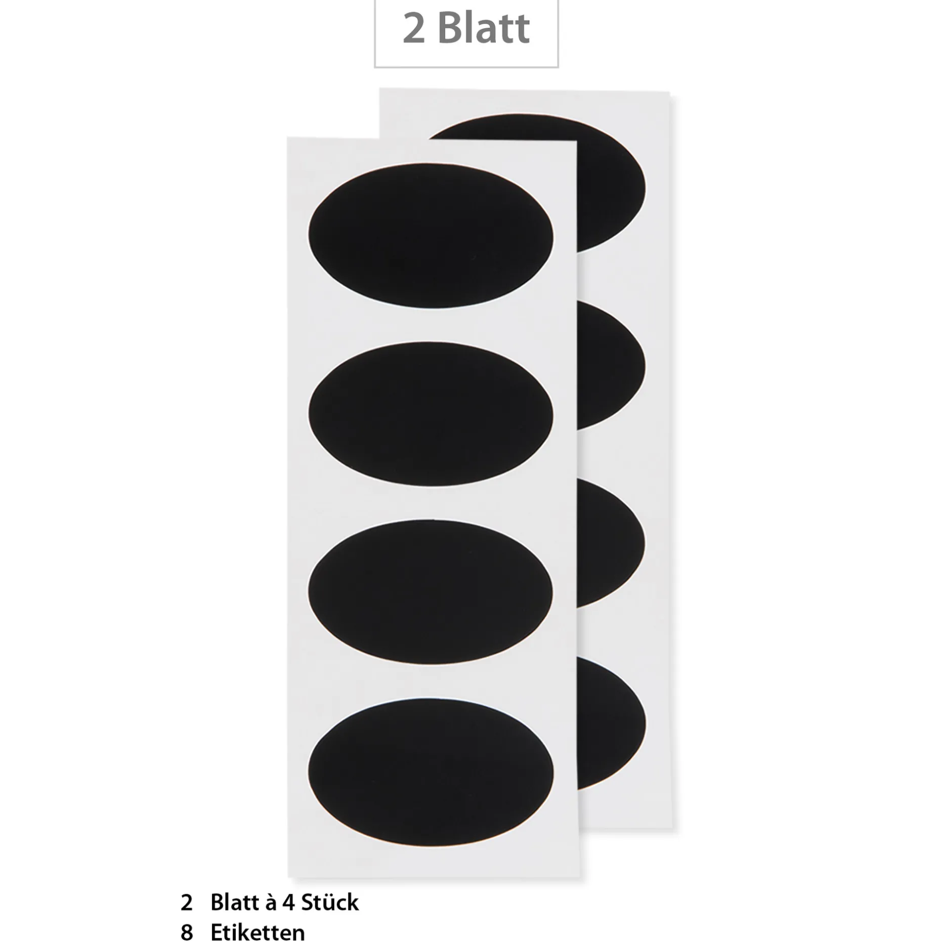 Die selbstklebenden Kreidetafel-Aufkleber eignen sich besonders gut zur Beschriftung von Einmachgläsern und Flaschen. Tafeletiketten sehen nicht nur edel aus, sie lassen sich auch beliebig oft neu beschreiben, denn die Kreidestifte sind mit einem feuchten Tuch leicht und ohne Rückstände abwischbar.