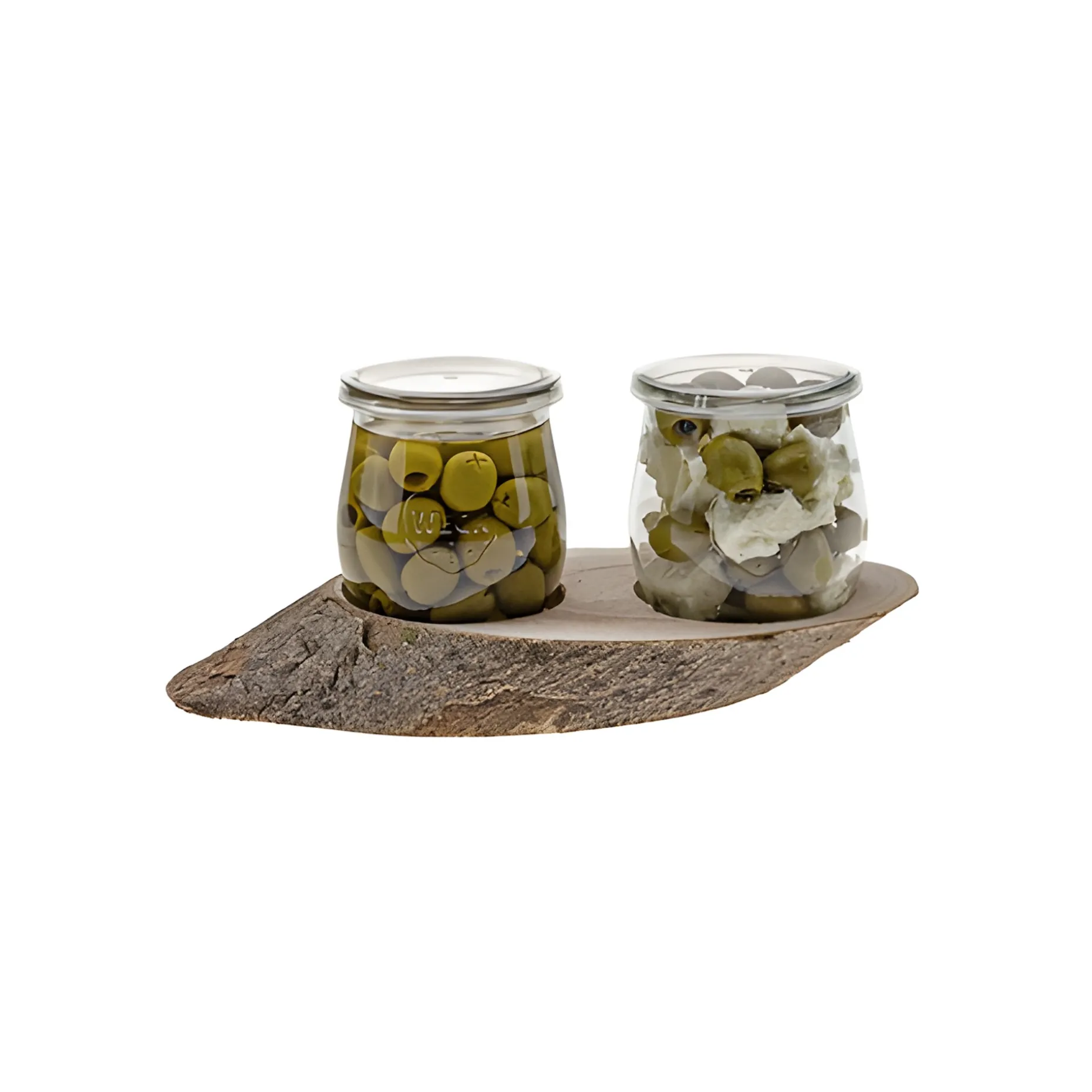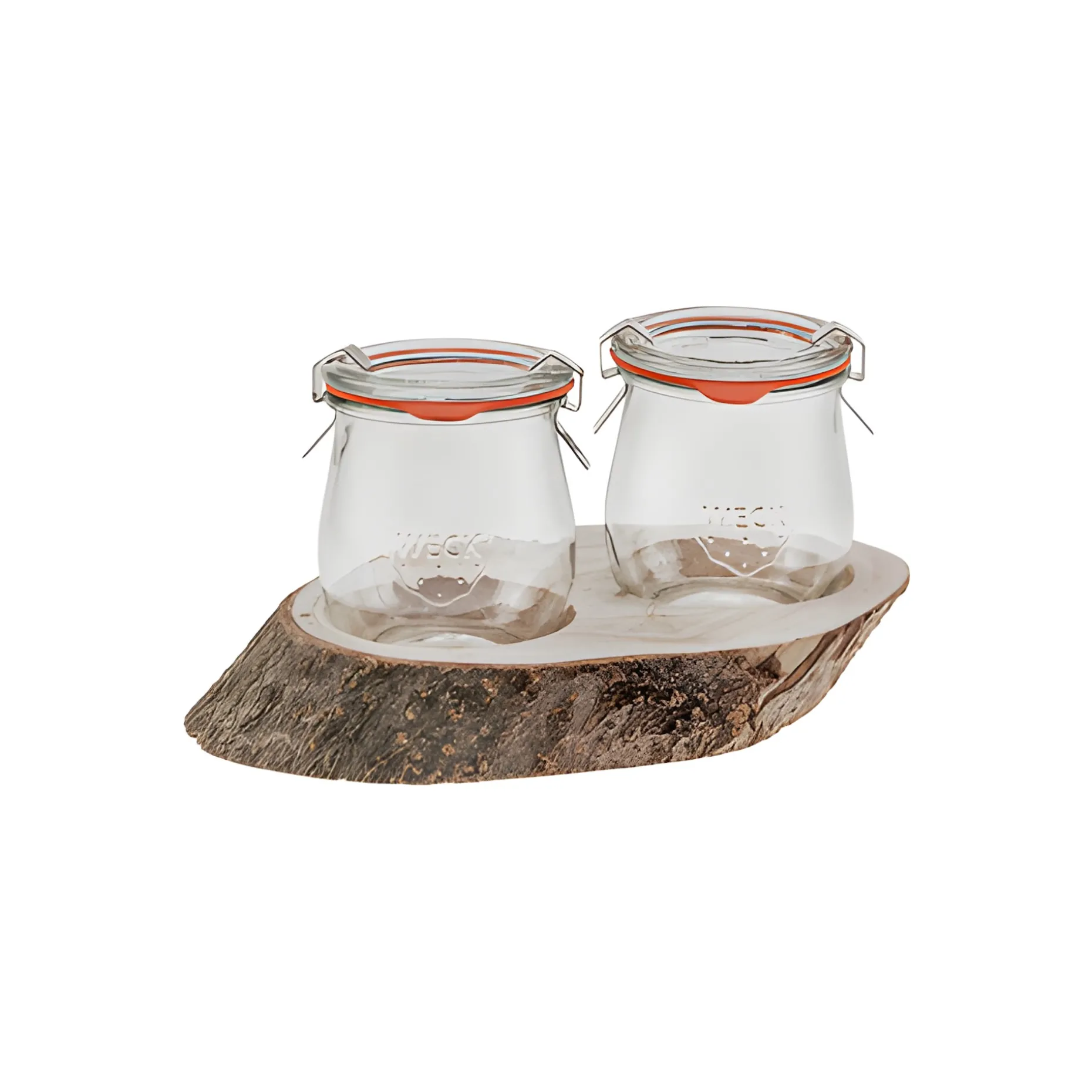 Wer den groben, rustikalen Stil mag, der ist bei dieser urigen Menage genau richtig. Die Baumscheibe mit Rinde hat zwei eingefräste Vertiefungen und kann sowohl Gläser mit Marmelade, Honig, Senf, Pesto oder Dips aufnehmen, wie auch Flaschen mit Soßen oder Karaffen mit Öl und Essig. Gewürz- und Pfeffermühlen werden in dem Untergestell aus leichtem, aber stabilem Naturmaterial bei Tisch oder am Buffet spektakulär in Szene gesetzt. Jede einzelne Menage aus Holz vom Blauglockenbaum wird durch die einzigartige Holzmaserung, Form und Bohrungen zu einem echten Unikat, deshalb können wir Gewicht und Maße auch nur als Durchschnittswerte angeben.