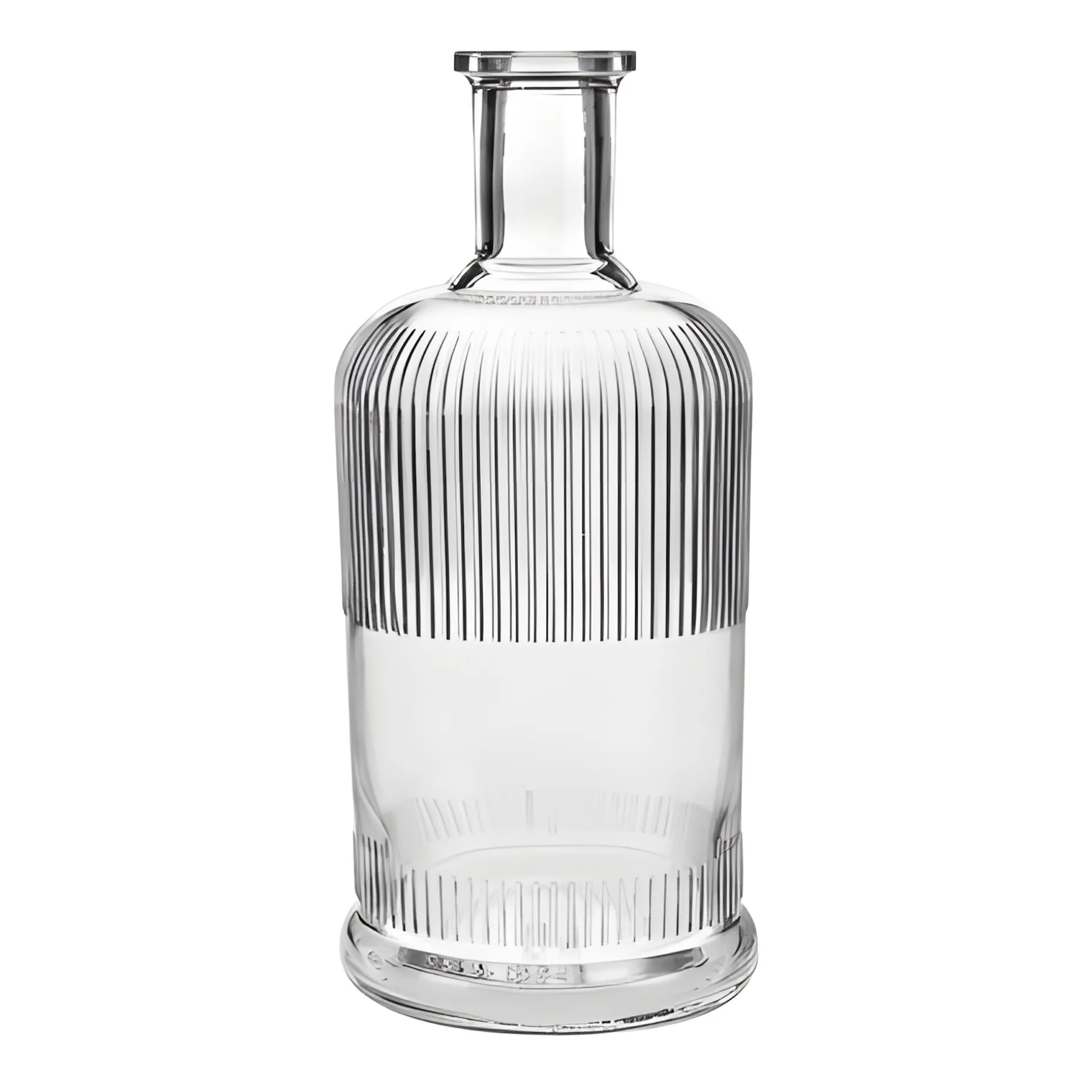 Damit diese schöne Relief-Flasche auch dekorativ und ausführlich beschriftet werden kann, hat der Flaschenkörper zwischen den Linien eine glatte Fläche, auf der ganz einfach Etiketten und Banderolen angebracht werden können. Die Etikettierfläche hat eine Höhe von maximal 50 mm und einem Durchmesser von etwa 87 mm.