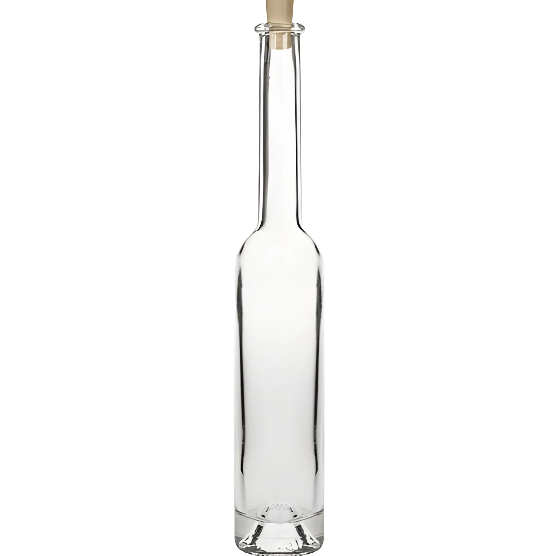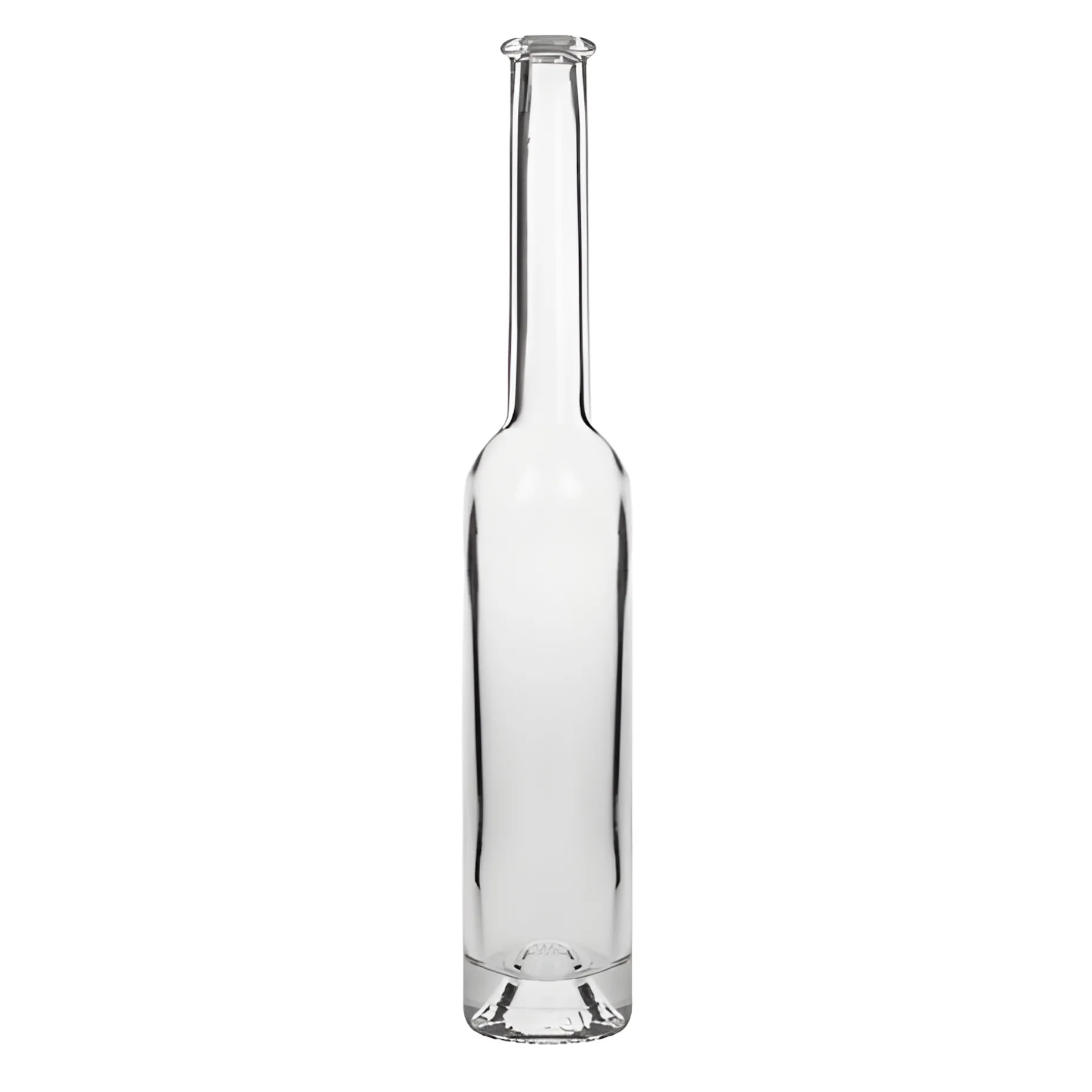 ‚Platina‘ ist eine klassische Likörflasche in eleganter, schmaler Form mit langem Hals und gewölbtem, schwerem Boden. Mit ihrer schönen Tellermündung und schmalen Öffnung eignet sie sich perfekt für hochwertige Spirituosen, Essenzen und Sirup, die fein dosiert werden wollen.