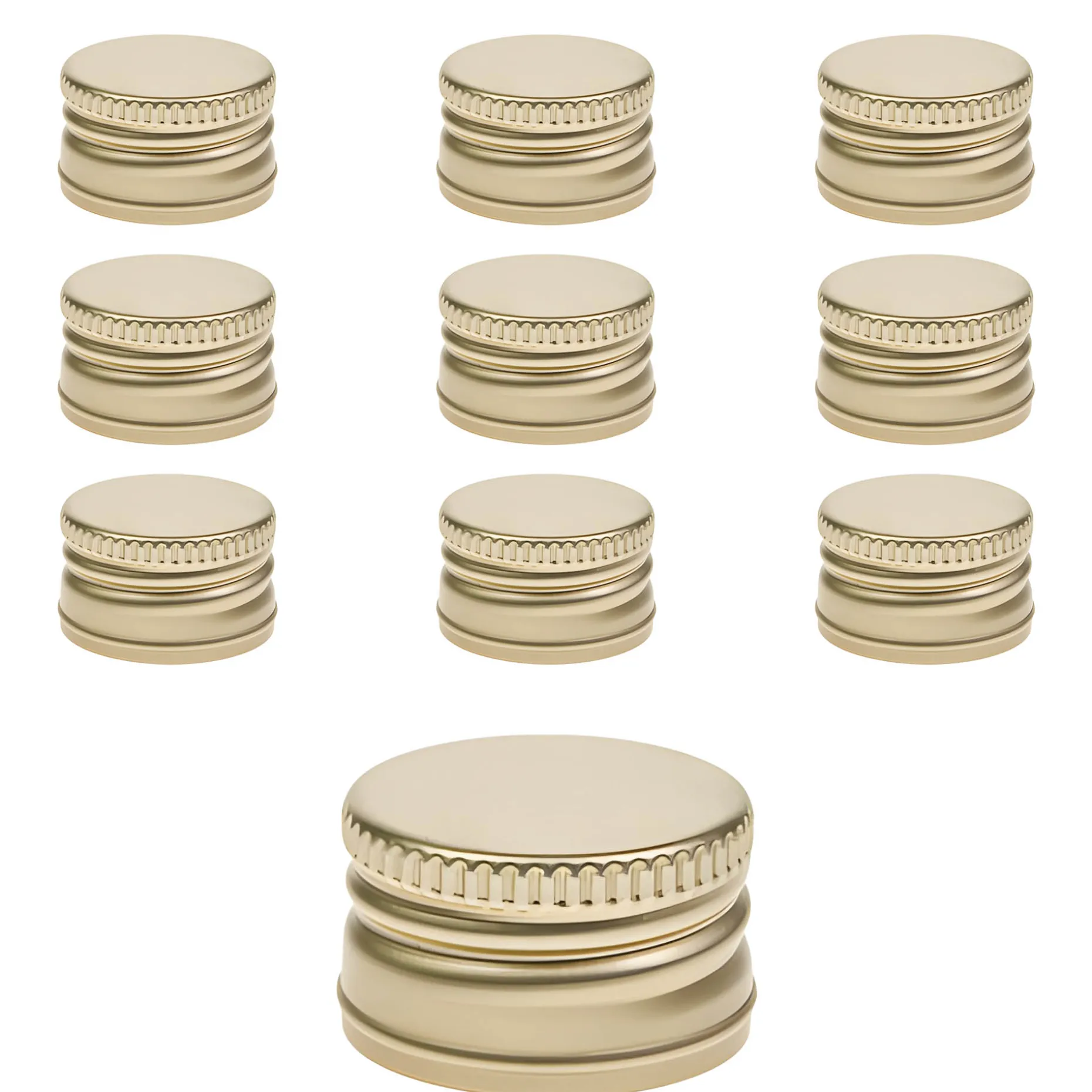 Der goldfarbene Schraubverschluss aus Aluminium ohne Rollrand im 10er-Pack passt auf alle Schraubflaschen mit einer PP 31,5-Mündung, z. B. die Marasca (ab 100 ml), die Dorica (ab 100 ml), die Toscana und viele andere.