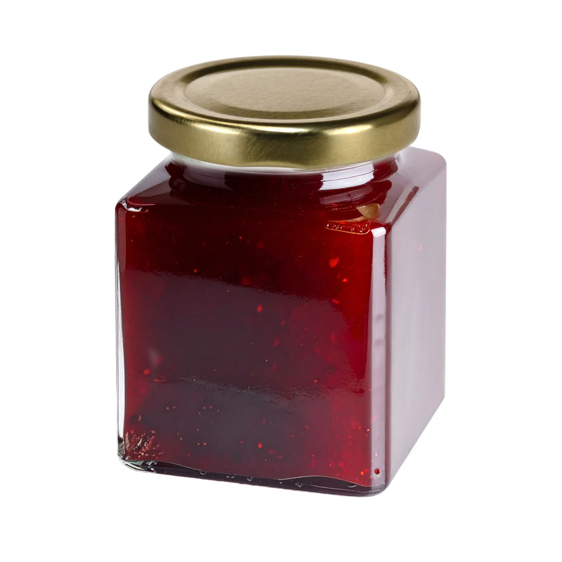 Mit einem Randvollvolumen von 218 ml ist das eckige Twist-Off-Glas ein superschönes Marmeladenglas, aber natürlich auch prima für Gelee, Curds, Chutney, Senf oder Eingelegtes wie Mixed Pickles geeignet. Das Einmachglas macht durch seine außergewöhnliche Form viel her und kann sich auch als hübsches Vorratsglas für Nüsse, Bonbons oder Pralinen sehen lassen. Zum Verschenken einer selbstgemachten Köstlichkeit ist es ideal und wertet jeden Präsentkorb optisch auf. Im Boden trägt es unser Firmenlabel G + F, ein Garant für hochwertige Qualität und Solidität.