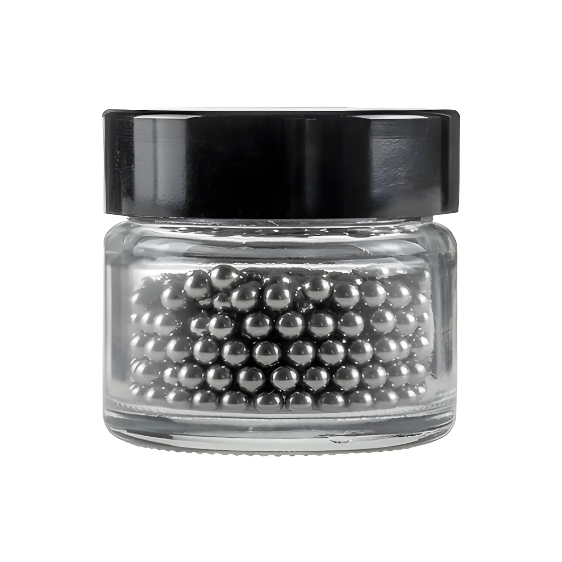 – Edelstahlperlen in das Glas oder die Flasche geben, sodass der Boden bedeckt ist.