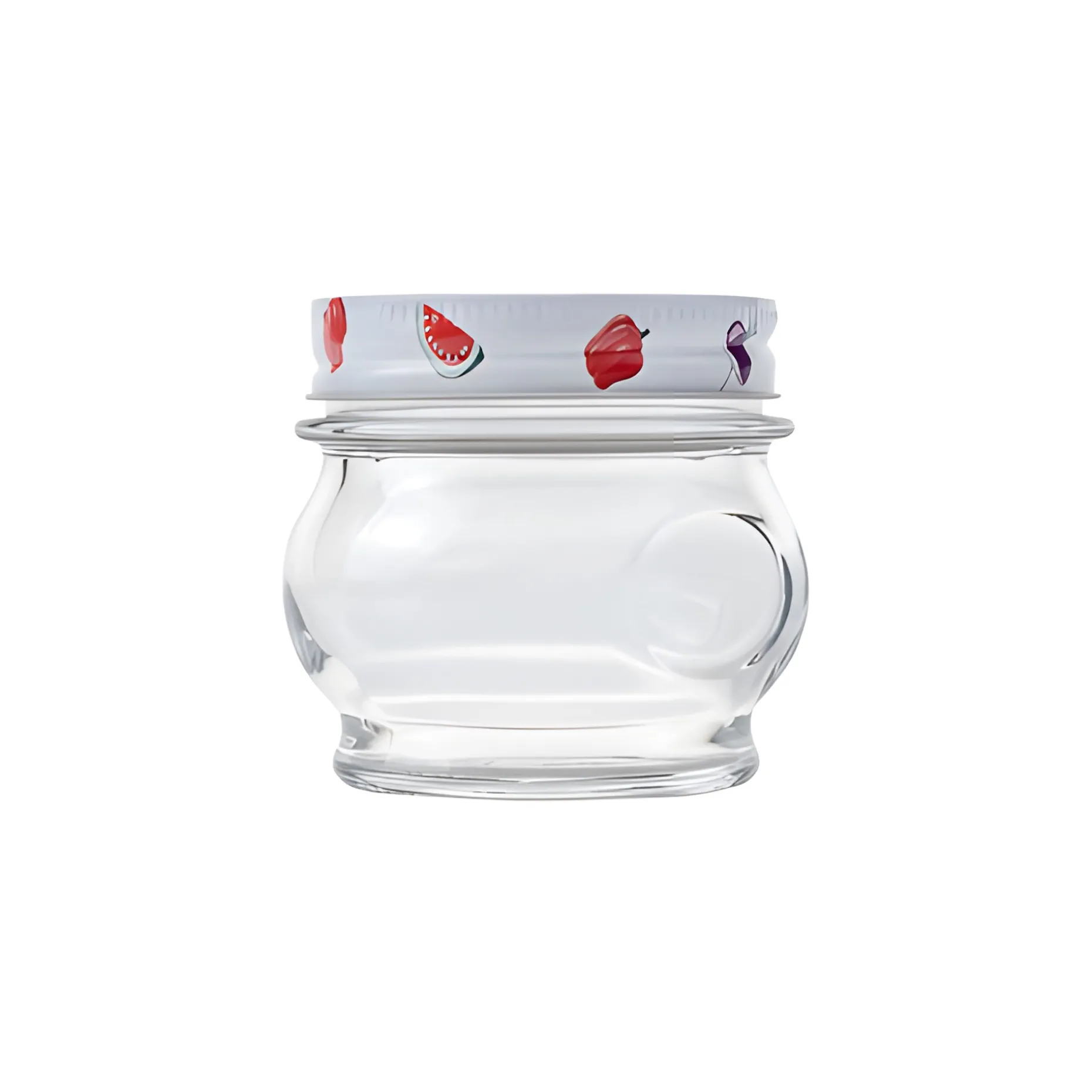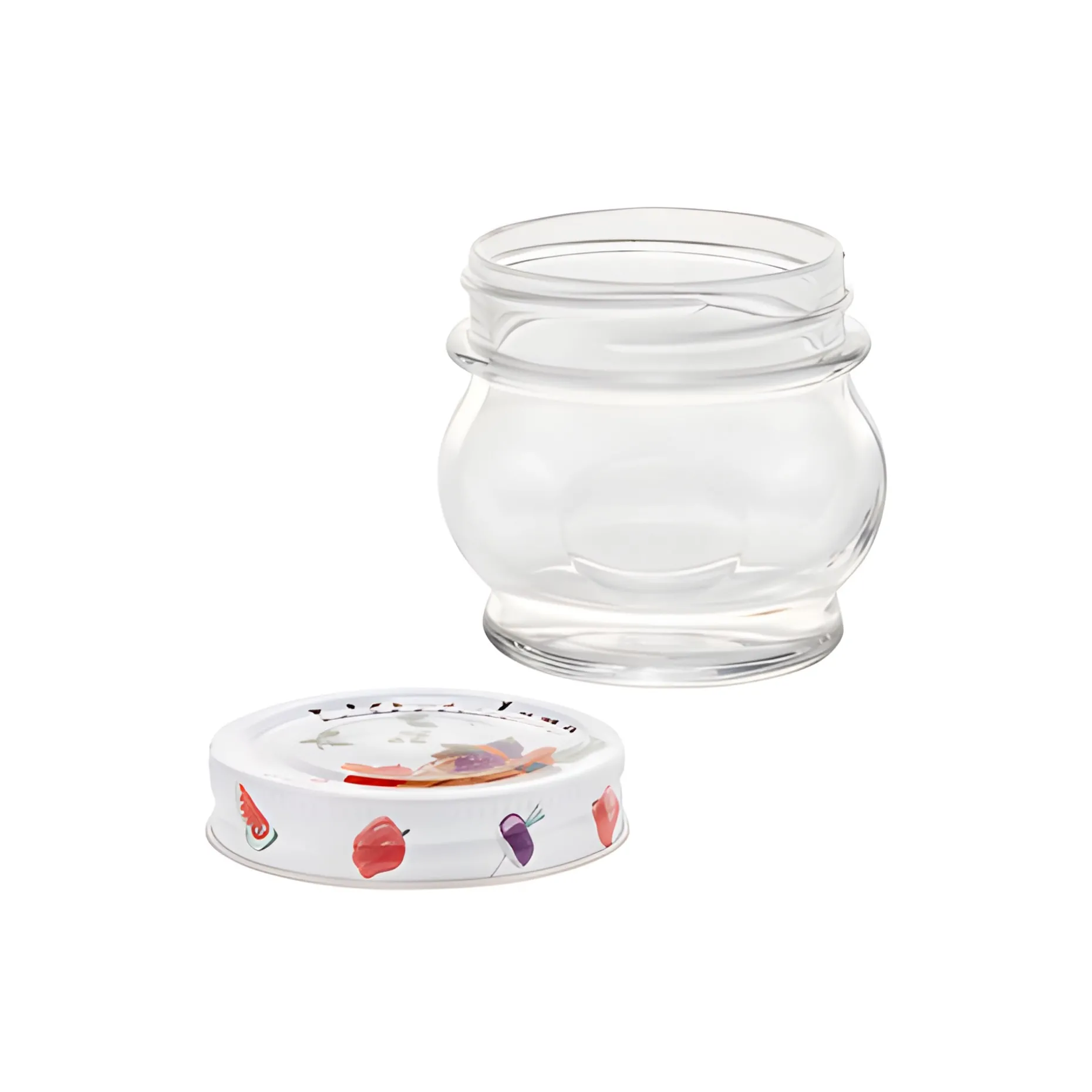 Das Marmeladenglas wird inklusive des bunt bedruckten Schraubdeckels CT 70 geliefert, der mit einem Vakuumknopf ausgestattet ist. Dieser Verschluss ist auch passend für Mason Jars Regular Mouth.