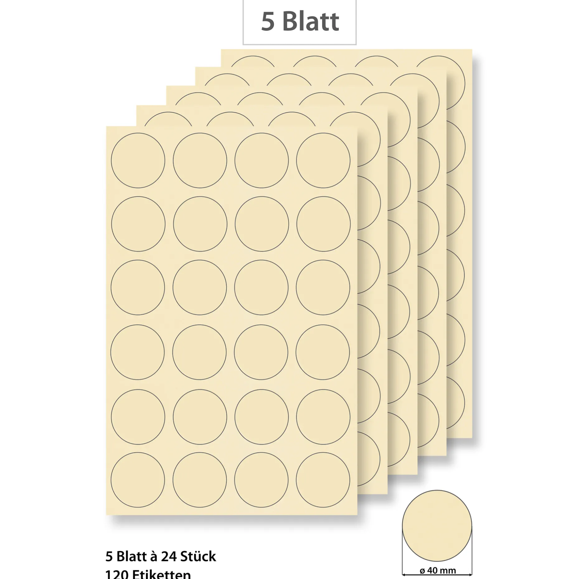 Informationen zum Artikel: Steffis Etiketten rund 40 mm creme – 5 Blatt A4