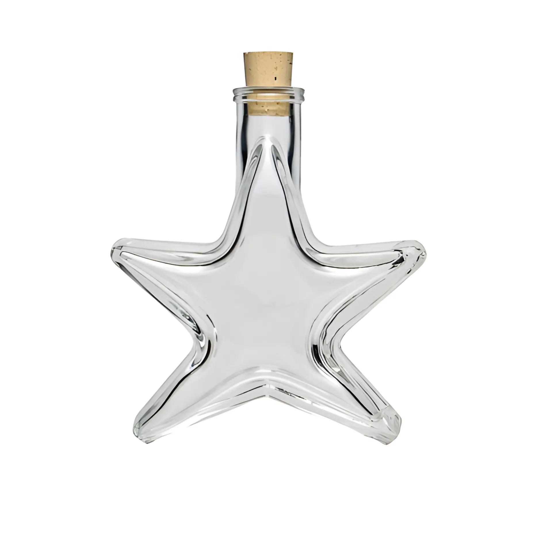 Die weihnachtliche Motivflasche in Form eines Sterns ist ein originelles Adventsmitbringsel. Befüllt mit wärmenden Spirituosen, einem selbstgemachten Likör oder Sirup und dekoriert mit weihnachtlichen Anhängern ist die hübsche Sternflasche mit Korkmündung eine wunderschöne Geschenkverpackung.