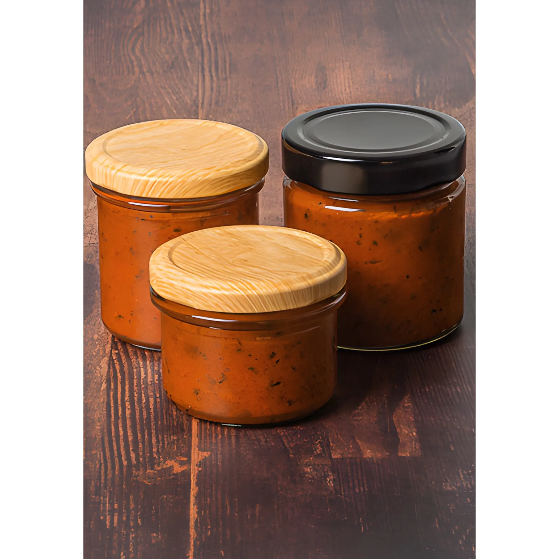 Das kleine Einmachglas mit großer Öffnung eignet sich perfekt für Einzelportionen von Marmelade und Gelee, aber auch Kuchen im Glas ist möglich. Aufgrund der flachen, geraden Form ist das Glas ideal für Wurst, Sülze oder Pasteten und alle Speisen, die man am Stück aus dem Glas stürzt. Bei diesem Sturzglas ragt die Stoßkante minimal über den Verschluss hinaus und bewirkt, dass beim Transport der Gläser nicht die Deckel, sondern die Stoßkanten aneinanderliegen.