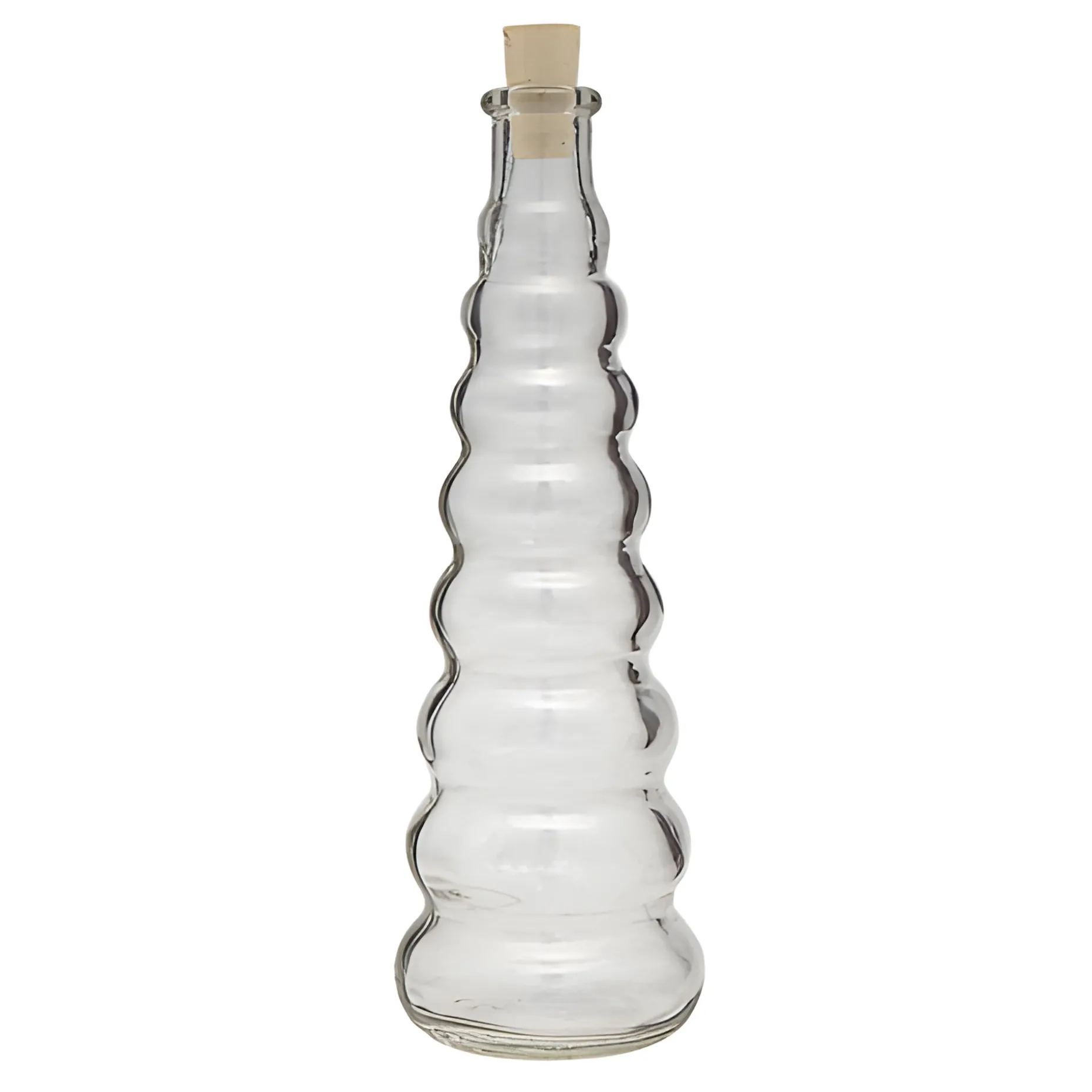 In dieser kleinen Korkenflasche werden edle Liköre, Obstbrände und feine Essenzen besonders dekorativ verpackt. Der geschwungene, treppenförmige Aufbau verleiht der Glasflasche einen einzigartigen Look mit großem Wiedererkennungswert.