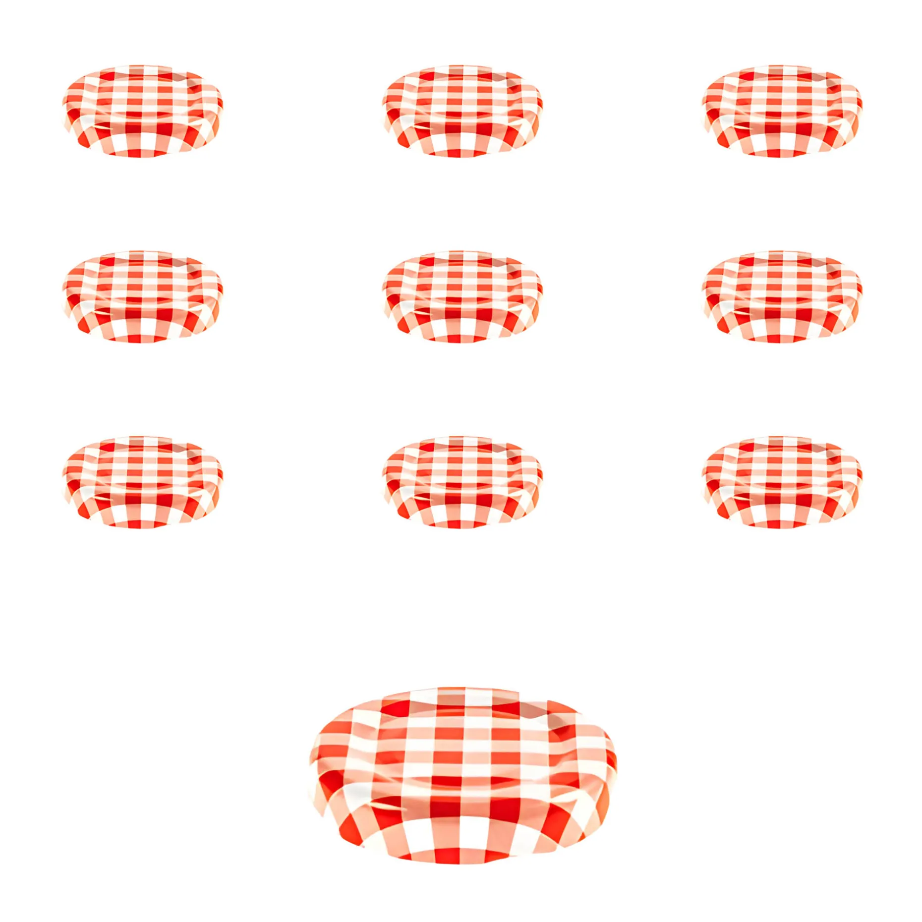Der rot-weiß karierte Deckel ist bis 100 °C erhitzbar (pasteurisierbar) und kann ab einer Füllmenge von 75 ml für ölhaltige Füllgüter eingesetzt werden.