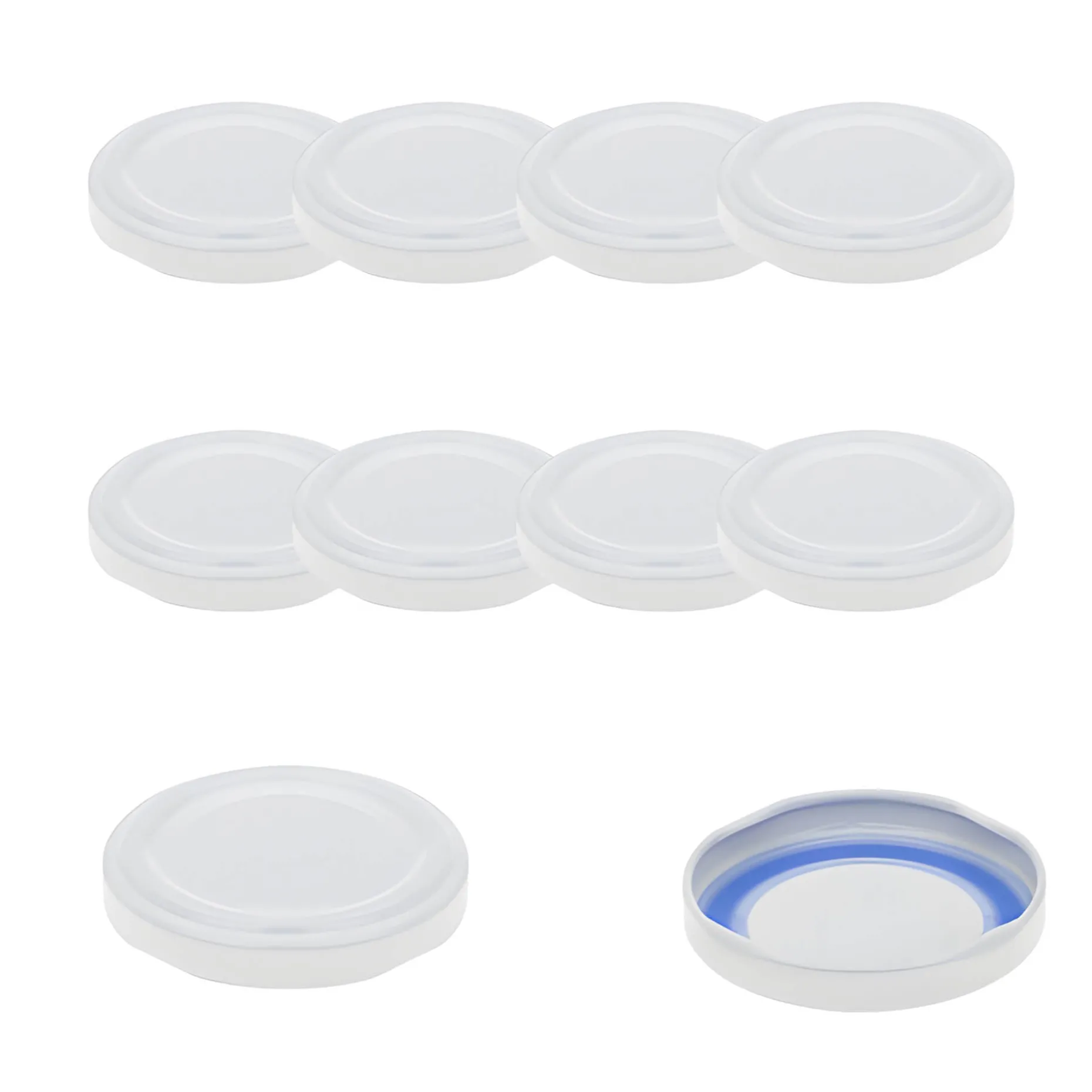 Der weiße Twist-Off-Verschluss im praktischen 10er-Pack passt auf Gläser und Flaschen mit einer TO 53 Mündung (äußerer Öffnungsdurchmesser des Glases ohne Gewinde ca. 48,9 mm). Der TO-Deckel BLUESEAL ist erhitzbar bis 100 °C (pasteurisierbar) und wegen seiner besonderen Dichtungsmasse speziell geeignet für ölhaltige Füllgüter.
