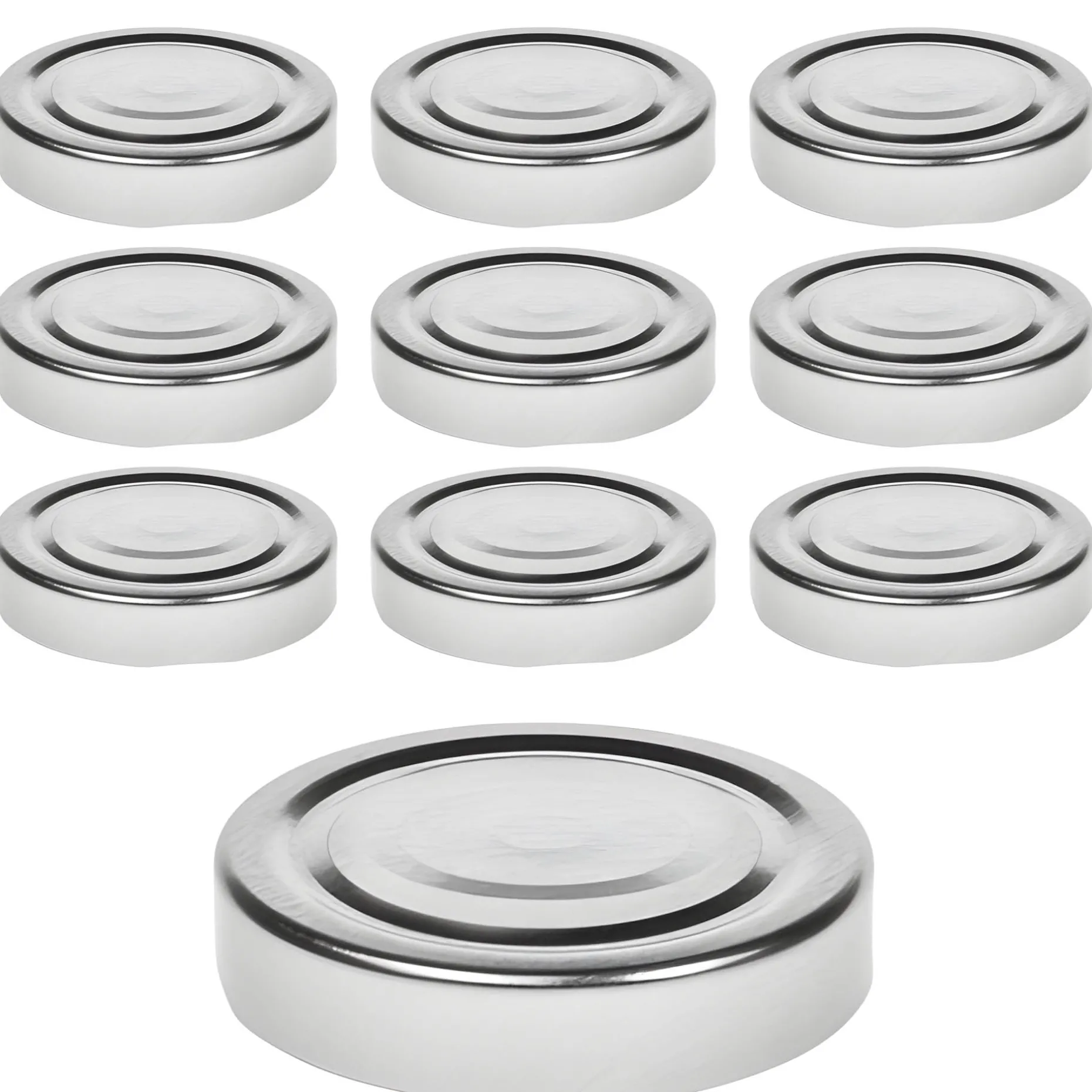 Hochwertiger Twist-Off-Verschluss Deep in Silber, passend für Gläser mit einer TO 66 Deep-Mündung (äußerer Öffnungsdurchmesser des Glases ohne Gewinde ca. 62 mm), im praktischen 10er-Pack.