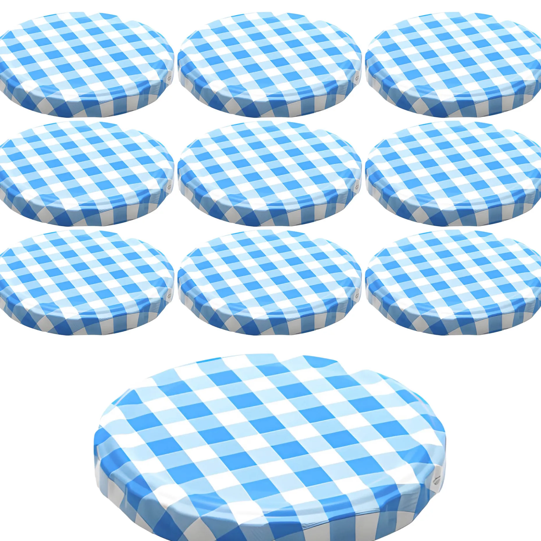 Der blau-weiß karierte Twist-Off-Verschluss im praktischen 10er-Pack passt auf Gläser mit einer TO 82 Mündung (äußerer Öffnungsdurchmesser ohne Gewinde ca. 77,4 mm). Der Twist-Off-Deckel ist erhitzbar bis 120 °C (sterilisierbar) und kann ab einer Füllmenge von 315 ml für ölhaltige Füllgüter eingesetzt werden.