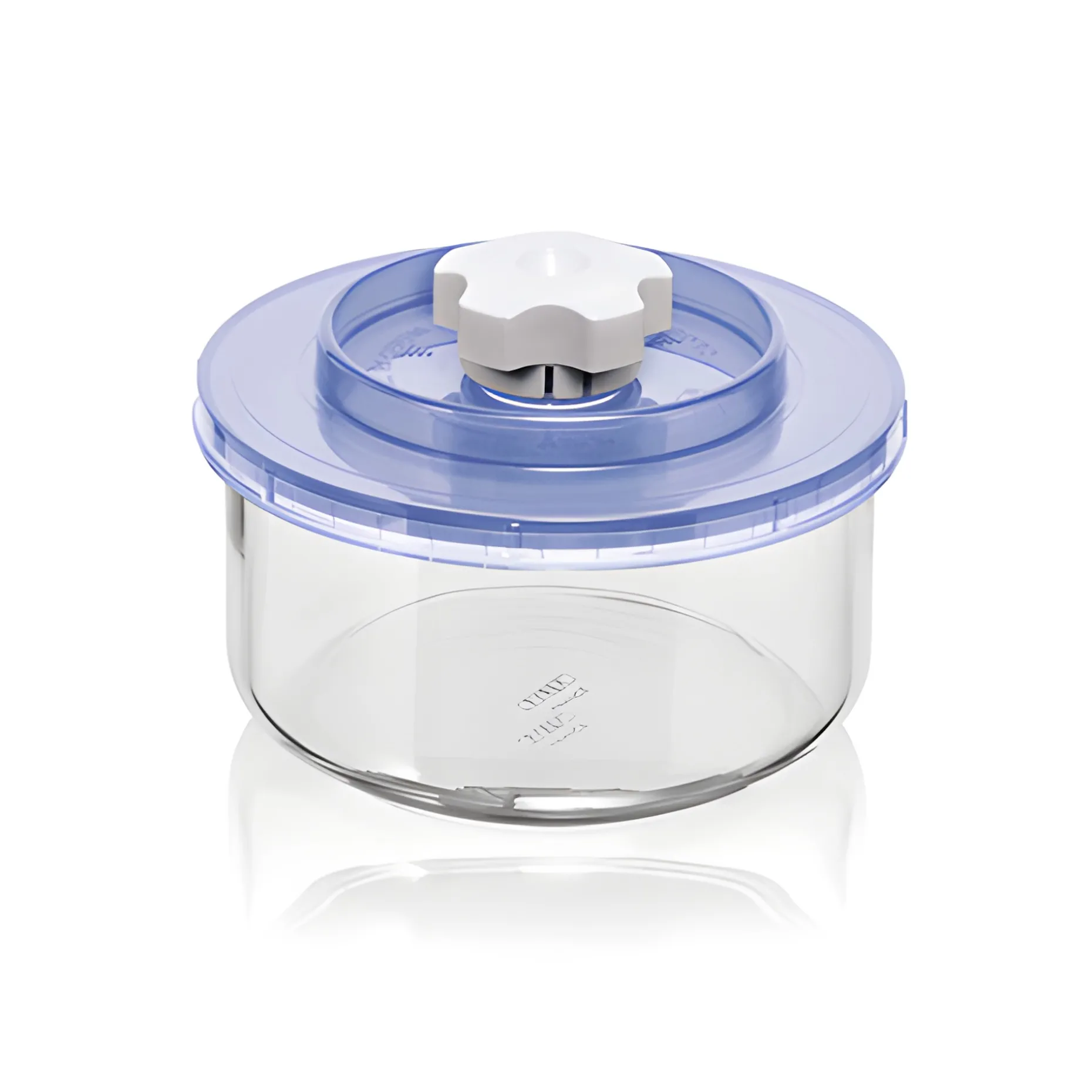 Der Deckel hat ein Ventil zum Öffnen, Vakuumieren und Verschließen, in welches der Ventilschlauch gesteckt wird, der mit einem Vakuumiergerät verbunden ist, um die Luft aus dem Glas herauszupumpen. Hat man kein solches Gerät, kann man auch eine Handpumpe verwenden und auf das Ventil setzen. In dem gefüllten Glas entsteht so ein Unterdruck, durch den die Lebensmittel im Glas vakuumverschlossen sind und länger frischgehalten werden.