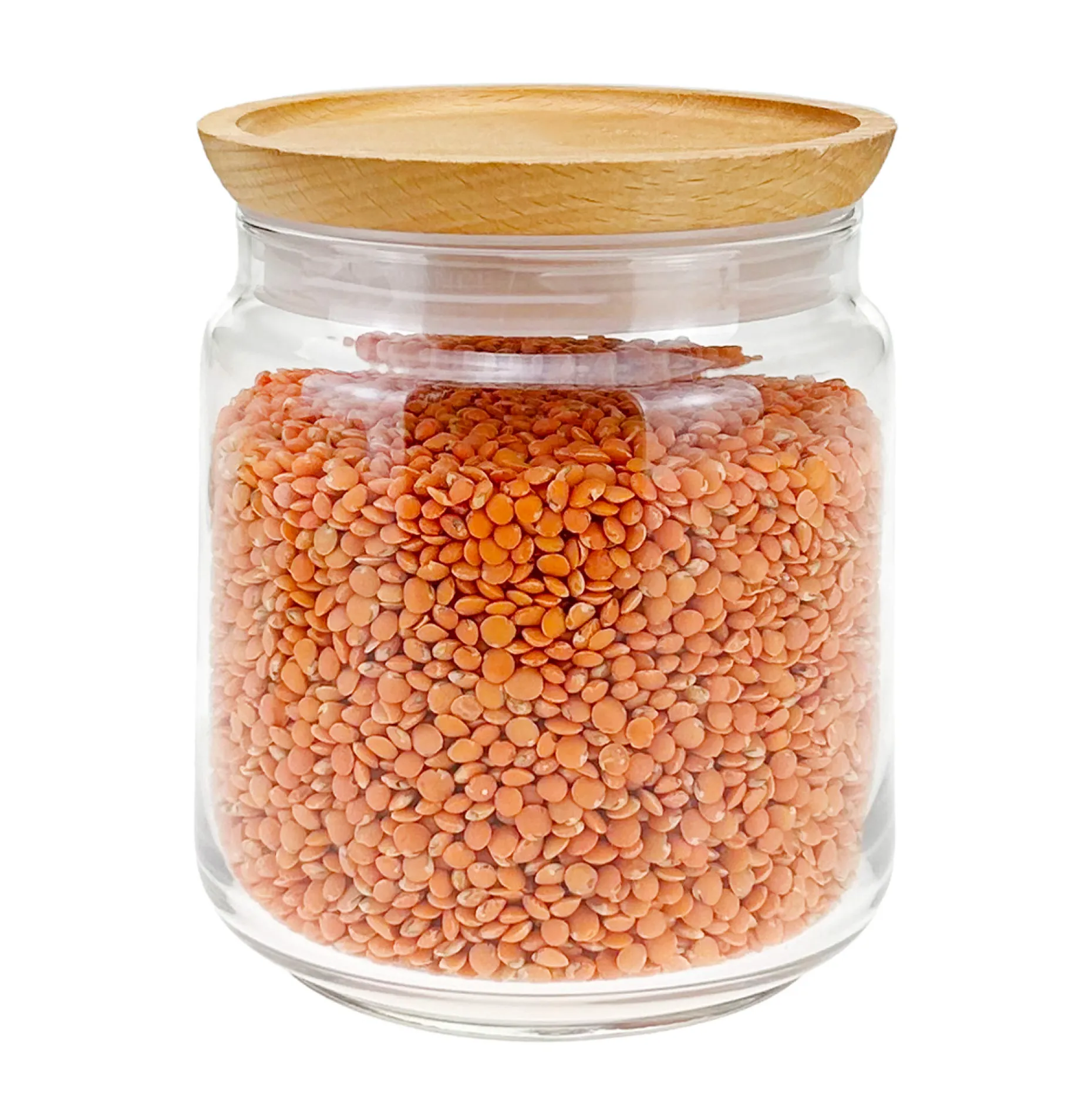 Modernes Vorratsglas aus hochwertigem Glas inklusive Holzverschluss aus Kiefernholz. Der runde Glasbehälter eignet sich zum Aufbewahren von trockenen Lebensmitteln wie Zucker, Gebäck, Bonbons, Frühstücksflocken oder Kaffee. Der Deckel zeichnet sich durch eine Kunststoffdichtung mit Lamellen und die besondere Form aus: Aufgrund einer leichten Erhöhung am Rand ist das Glas stapelbar und lässt sich besonders platzsparend in der Küche unterbringen. Alle Gläser der Pure Jar-Serie können untereinander kombiniert werden. Das hochweiße Glas ist spülmaschinenfest, der Deckel ist per Hand zu reinigen.