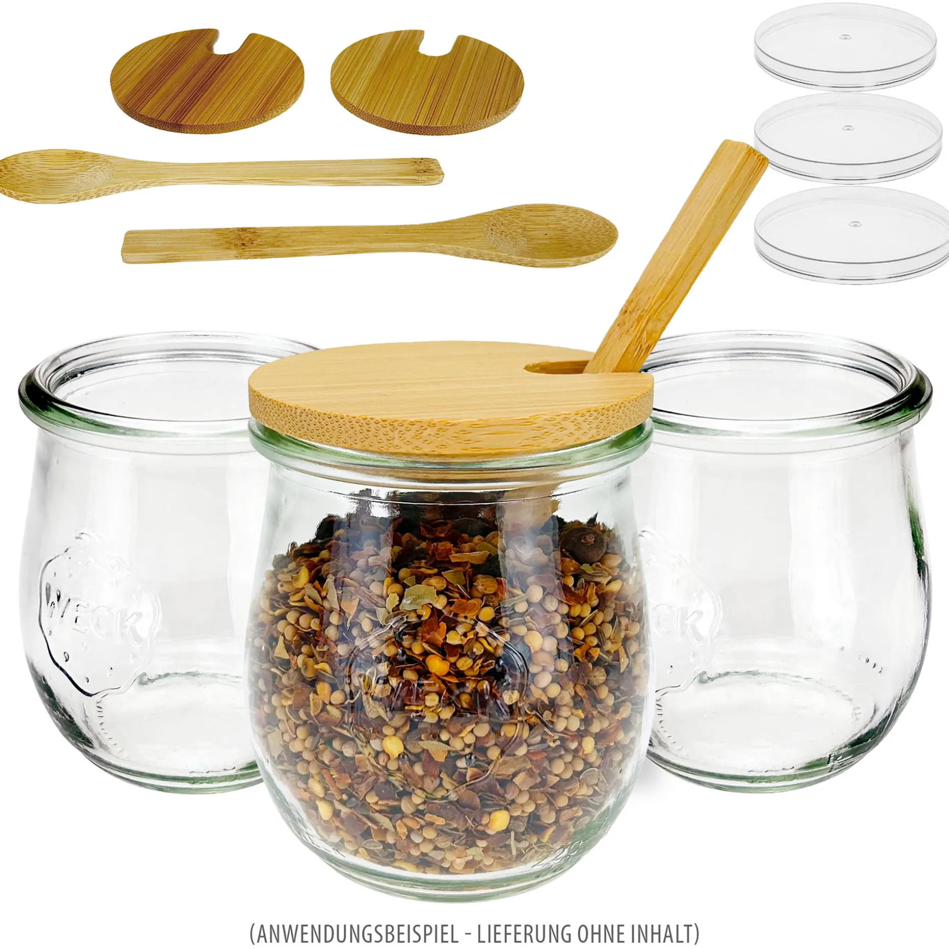 Informationen zum Artikel: WECK-Mini-Tulpenglas mit Bambusdeckel und Löffel, 3er Set