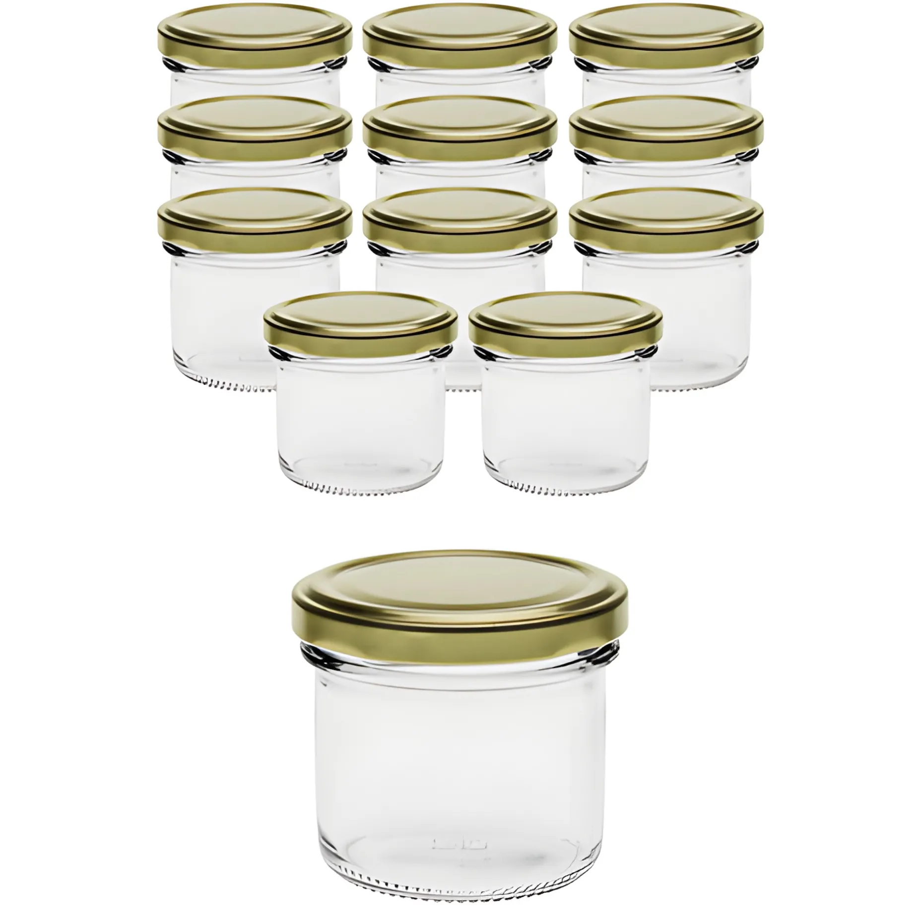 Informationen zum Artikel: 12er Set Sturzglas 125 ml mit Deckel gold