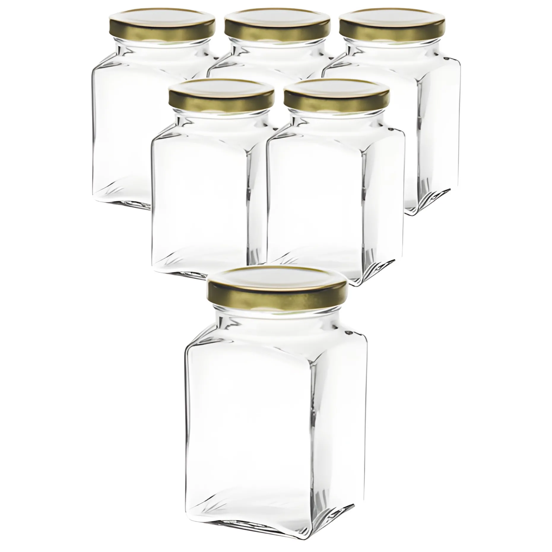Informationen zum Artikel: 6er Set Quadratglas 260 ml mit Deckel gold