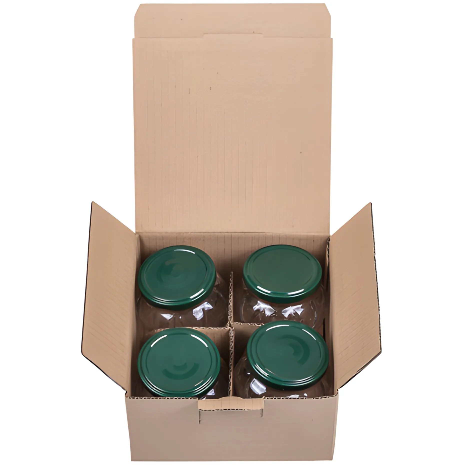 Die Abtrennungen im Karton sorgen für einen stabilen Halt und verhindern gleichzeitig den direkten Kontakt der Gläser. So können alle Einmachgläser sicher und ohne Schaden transportiert werden. Zudem lässt sich der Versandkarton schnell und einfach zusammenfalten, sodass er gleich einsatzbereit ist.