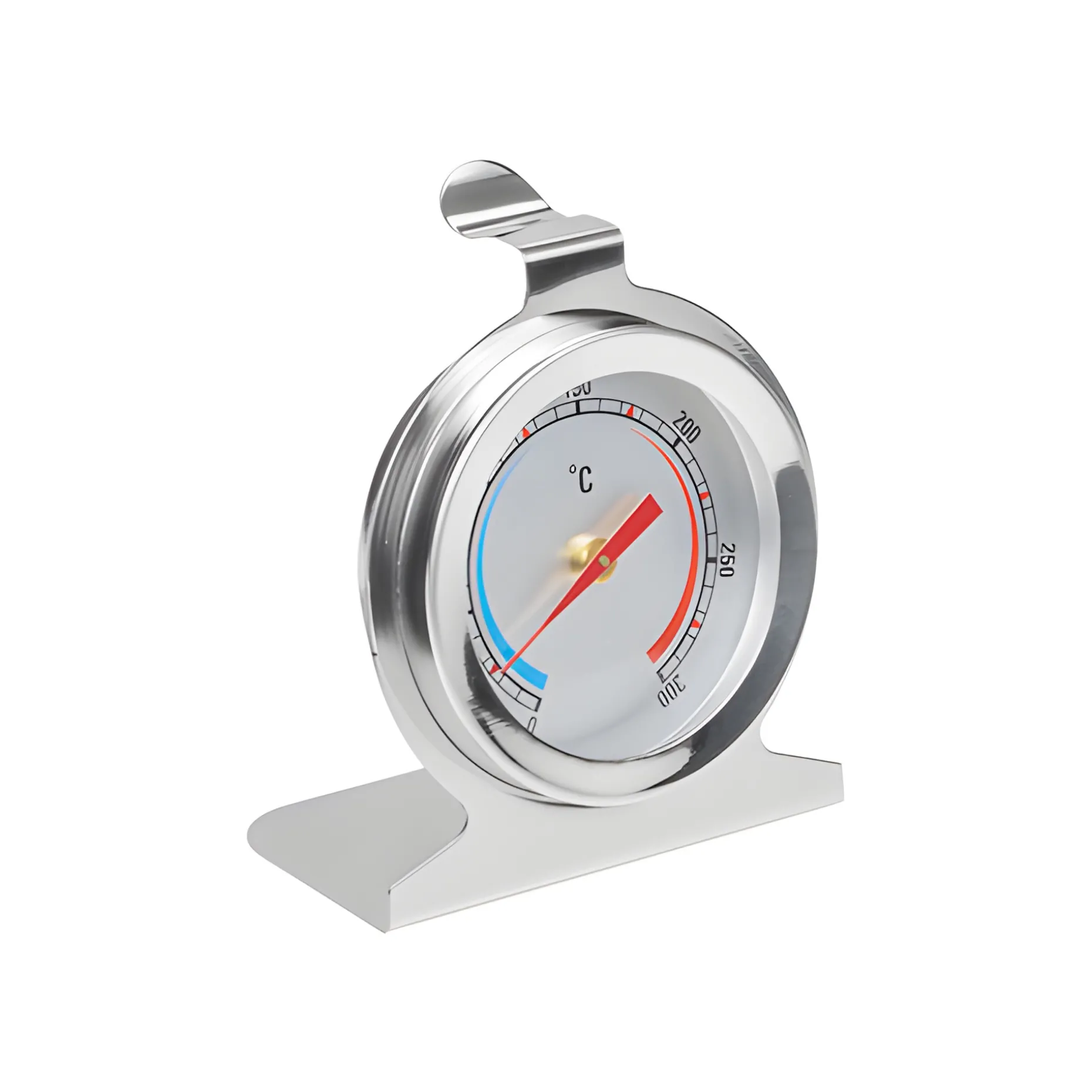 Das Küchenthermometer hat eine übersichtliche Ableseskala mit einem großen Ziffernblatt und klaren blauen und roten Zonenanzeigen, sodass Sie die Ofentemperatur leicht ablesen können. Der Messbereich liegt zwischen 0 °C und 300 °C. Es hat einen stabilen Fuß und einen Haken und kann sowohl am Rost oder Backblech eingehängt als auch im Ofen aufgestellt werden.