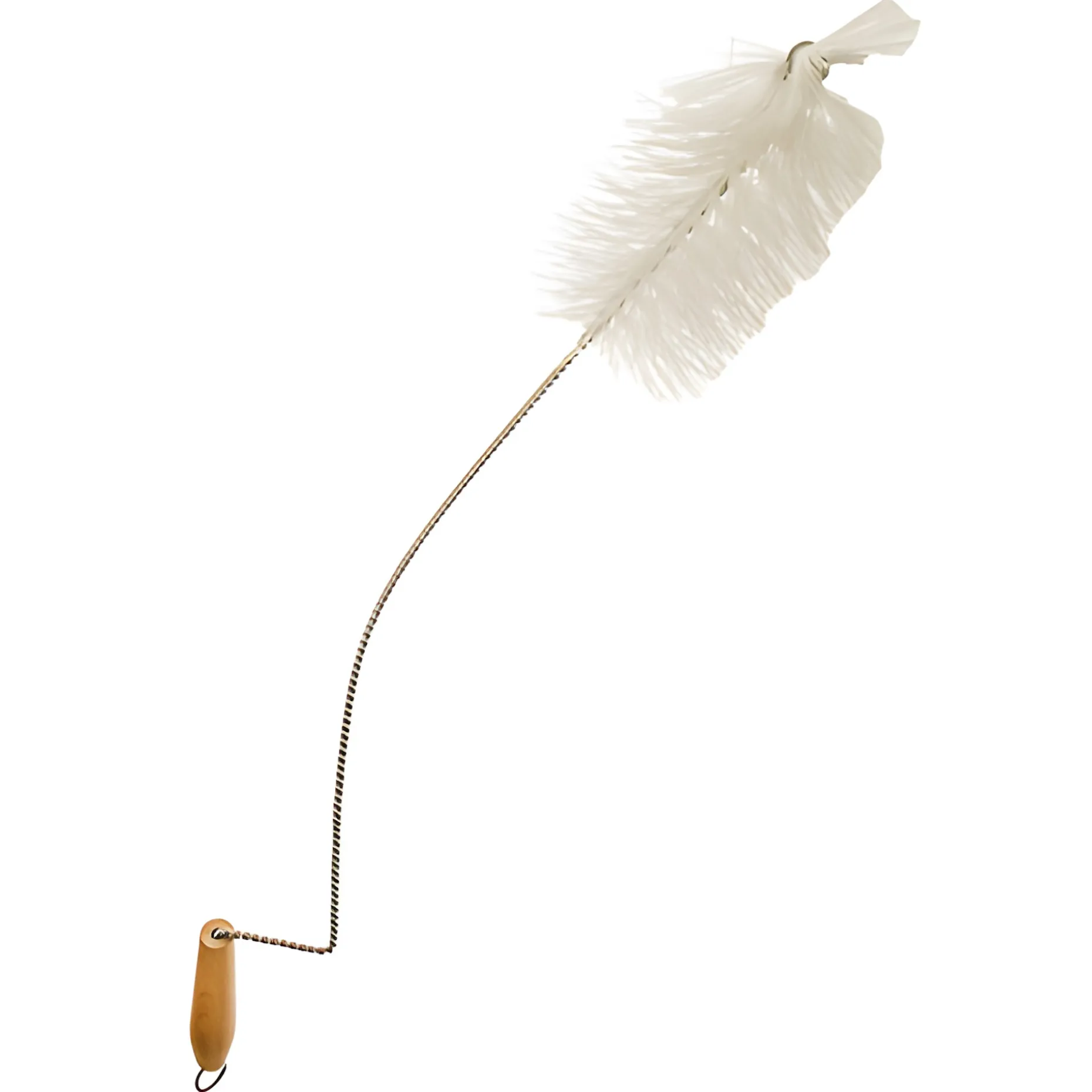 Diese Bürste mit kurbelartigem Holzgriff und gebogenem Drahtgestell eignet sich gut zur Reinigung von größeren Behältern wie z. B. Glasballons.