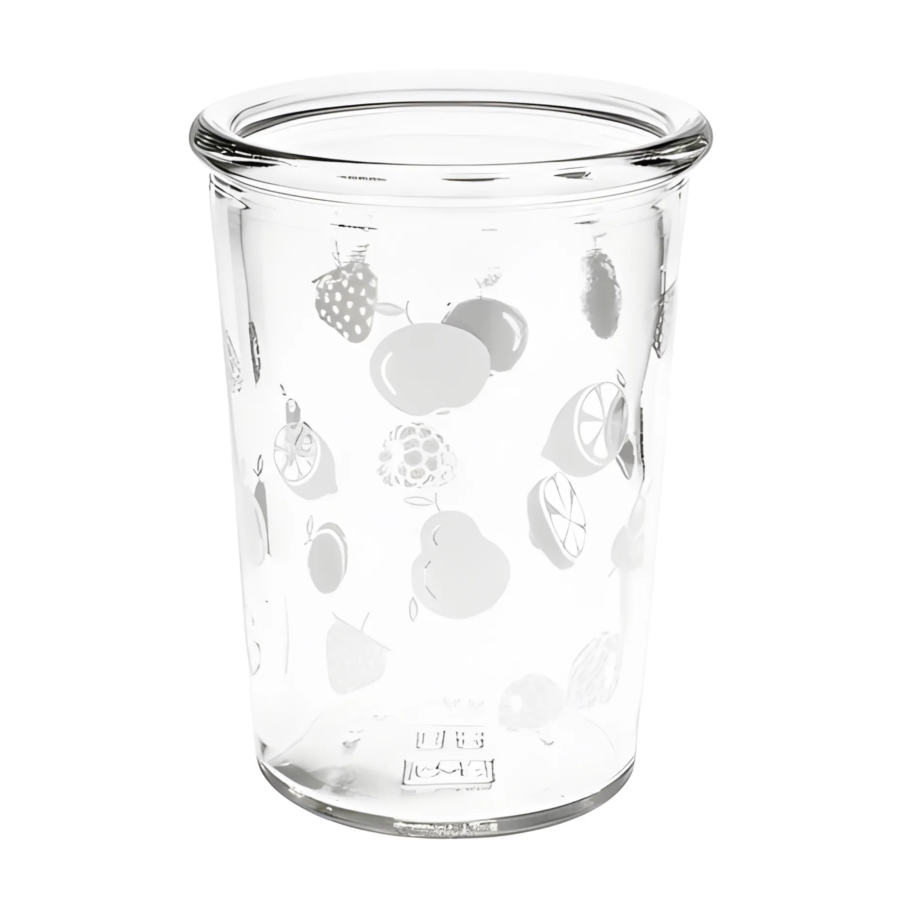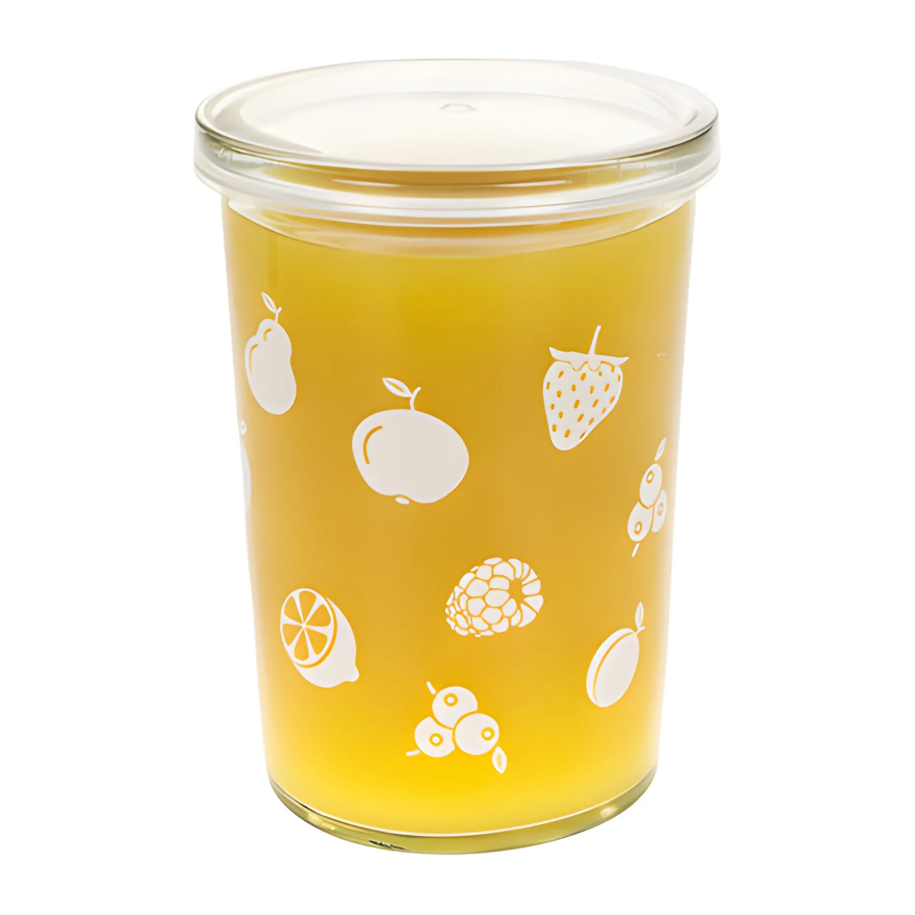 Jetzt wird es fruchtig! Ob Getränke, Smoothies, Joghurtdrinks oder Tee: Aus diesem schönen Sturzglas in Becherform können Getränke aller Art genossen werden. Das Glas ist mit verschiedenen Früchten in Weiß bedruckt, was es zum perfekten Gefäß für frische Obstvariationen macht. Es eignet sich natürlich auch als Servierglas für Nachspeisen, Fingerfood oder Schichtjoghurt. Kombiniert mit einem praktischen Frischhaltedeckel können selbstgemachte Köstlichkeiten und Getränke auch hervorragend in diesem formschönen Becherglas transportiert werden, das sich auch als Trinkglas sehr gut eignet.