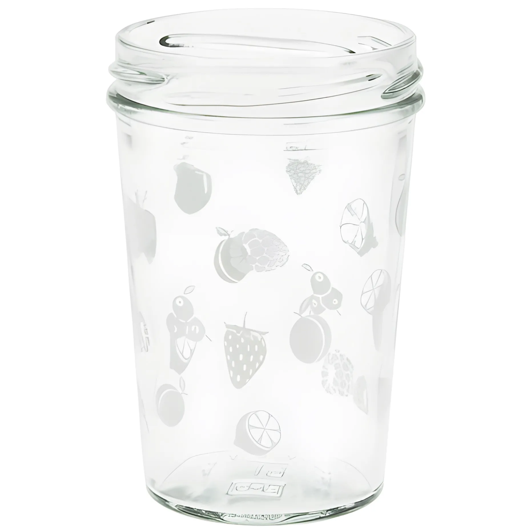 Jetzt wird es fruchtig! Ob Getränke, Smoothies, Joghurtdrinks oder Tee: Aus diesem schönen Sturzglas in Becherform können Getränke aller Art genossen werden. Das Glas ist mit verschiedenen Früchten in Weiß bedruckt, was es zum perfekten Gefäß für frische Obstvariationen macht. Kombiniert mit einem Twist-Off-Deckel wird es zum perfekten Marmeladenglas, dank der Sturzform eignet es sich auch hervorragend für kleine Kuchen im Glas und als Dessertbecher.