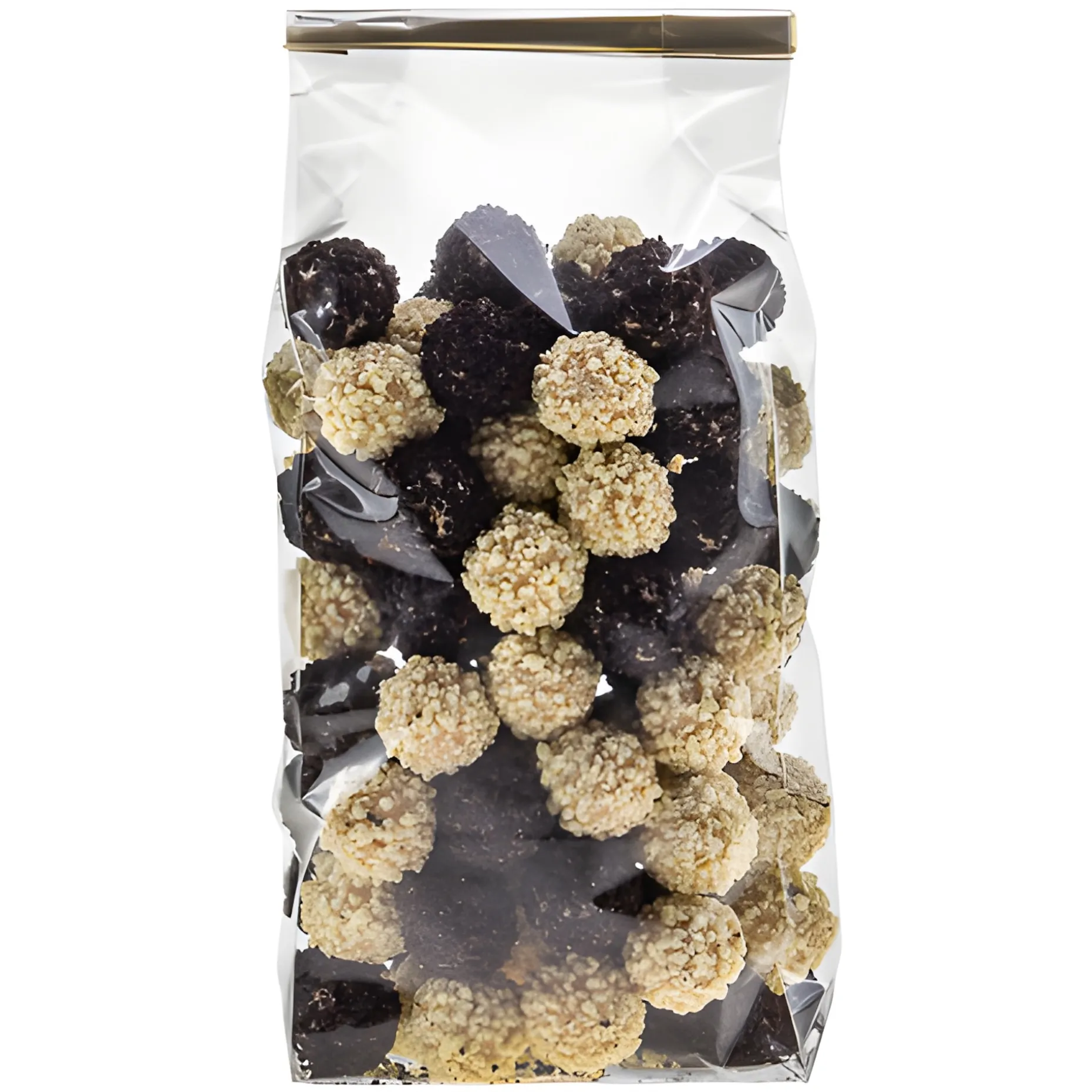 Die Beutel sind aromadicht und haben ein transparentes Bodenblatt, das zusätzliche Sicherheit gegen Aufreißen des Bodens bietet, und sind 100%ig lebensmittelrechtlich konform.
