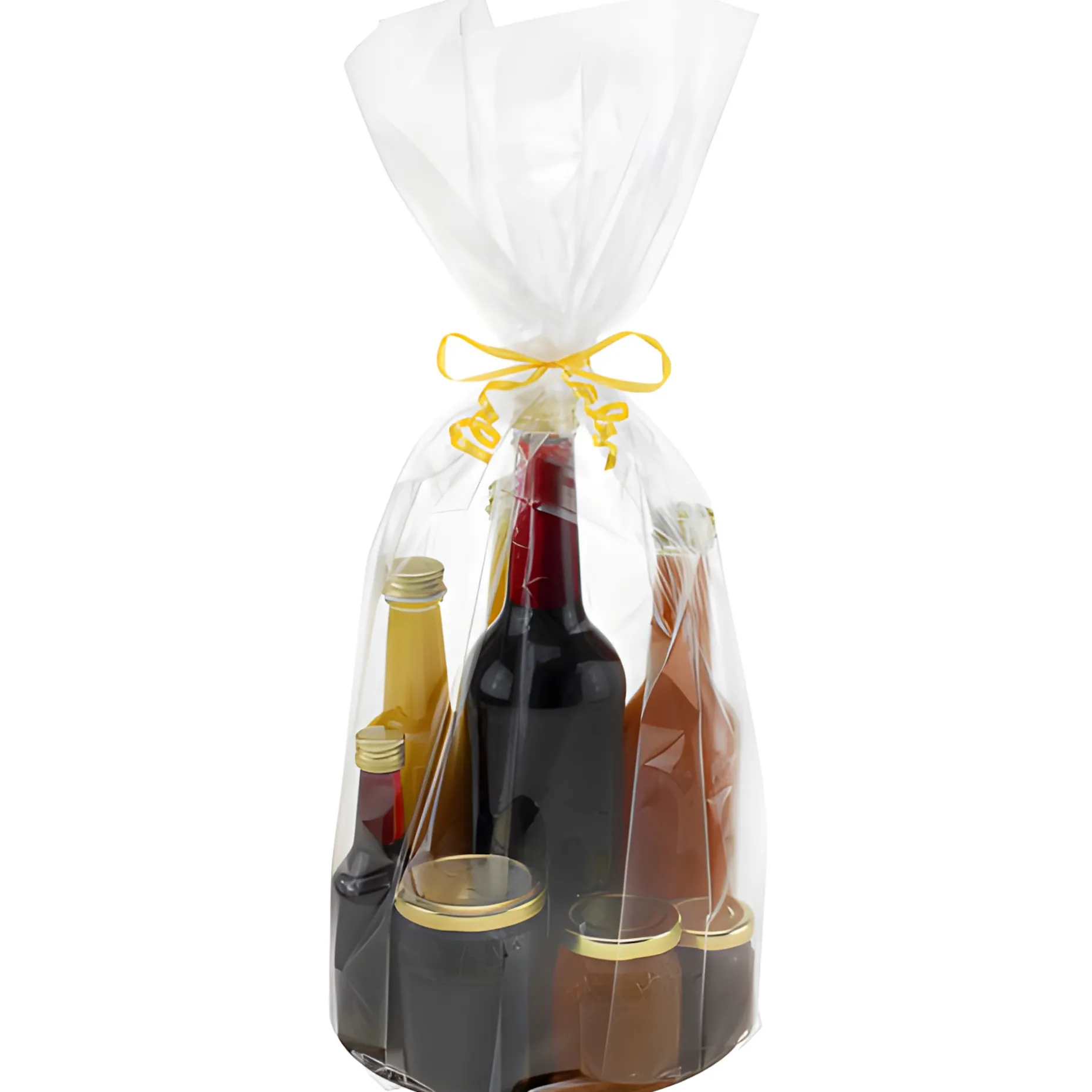 Das umständliche Verpacken in Folie hat endlich ein Ende. Mit dem hochtransparenten, achteckigen Diamantbeutel der Marke Exclusive Bag können Sie einfach die beiliegende Kartonscheibe entweder mit der goldenen oder silbernen Seite nach oben einlegen und dann den Beutel nach Belieben befüllen. Vielleicht mit einem Ensemble aus einem selbstgemachten Likör, etwas Gebäck und passender Deko, einem Spielzeug und Schokolade oder einem ansprechendem Arrangement für eine Hochzeit, ein Jubiläum oder jeglichen anderen Anlass. Je nach Höhe und Durchmesser des Beutels kann sogar ein ganzer Präsentkorb in einem Diamantbeutel Platz finden.