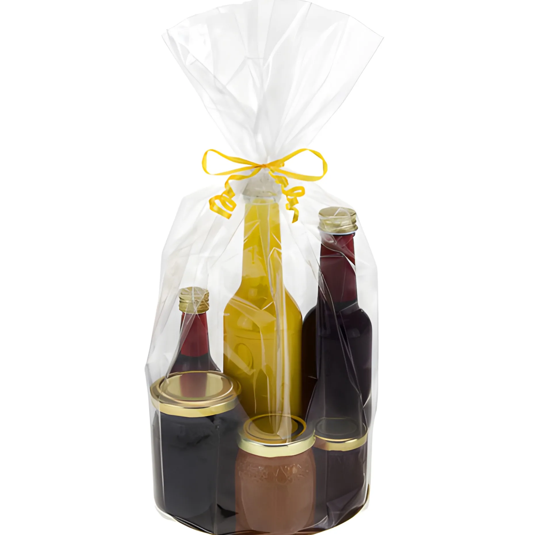 Das umständliche Verpacken in Folie hat endlich ein Ende. Mit dem hochtransparenten, achteckigen Diamantbeutel der Marke Exclusive Bag können Sie einfach die beiliegende Kartonscheibe entweder mit der goldenen oder silbernen Seite nach oben einlegen und dann den Beutel nach Belieben befüllen. Vielleicht mit einem Ensemble aus einem selbstgemachten Likör, etwas Gebäck und passender Deko, einem Spielzeug und Schokolade oder einem ansprechendem Arrangement für eine Hochzeit, ein Jubiläum oder jeglichen anderen Anlass. Je nach Höhe und Durchmesser des Beutels kann sogar ein ganzer Präsentkorb in einem Diamantbeutel Platz finden.