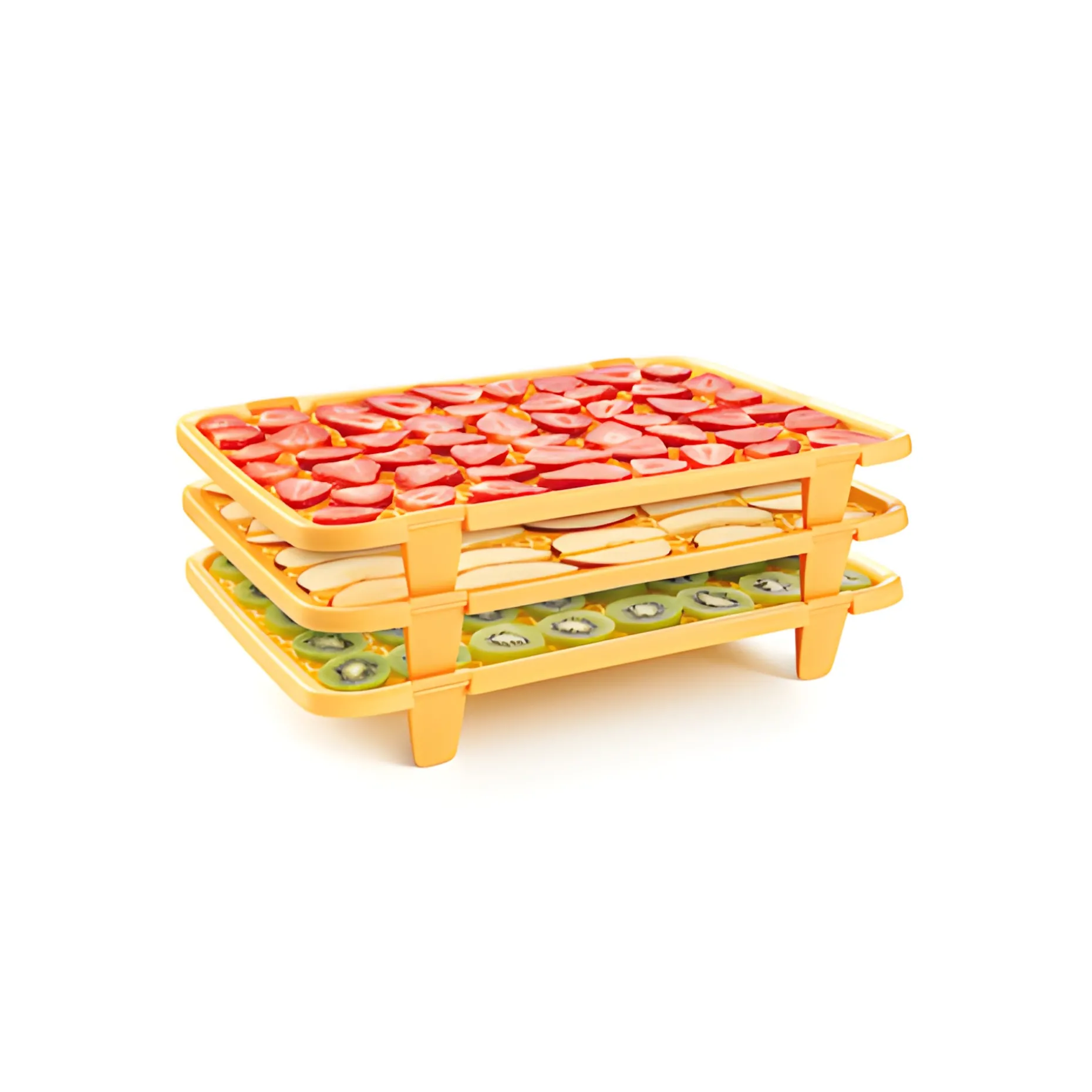 Das Gitter aus erstklassigem, robustem Kunststoff lässt sich durch Ausklappen der Beinchen im Handumdrehen in einen flachen Tisch verwandeln, der viel Platz zum Trocknen von Obst, Gemüse, Pilzen, Fleisch und Teigwaren im Backofen sowie bei der Lufttrocknung bietet. Die stapelbaren Dörr-Gestelle stehen beim Dörrvorgang aufeinander und nach dem Gebrauch können die Gitter wieder platzsparend zusammengelegt werden. Bitte nur im Elektro- und Heißluftofen verwenden, im Gasofen sind die Dörrgitter nicht einsetzbar. Die Dörrgitter sind natürlich lebensmittelgeeignet und spülmaschinenfest.
