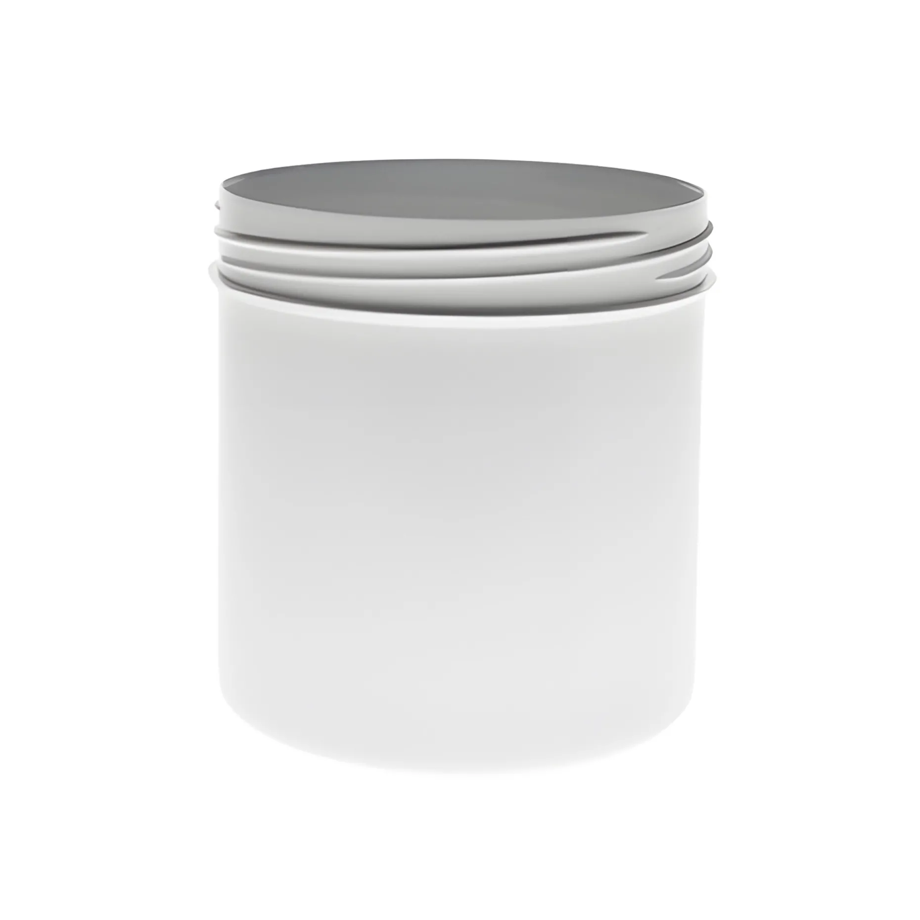Die schlichte Dose aus weißem Kunststoff ist eine schöne und praktische Verpackung für Kosmetika und Lebensmittel. Sie ist leicht, bruchfest und gewährt mit dem separat angebotenen Kunststoffdeckel eine sichere Aufbewahrung in der Tasche.