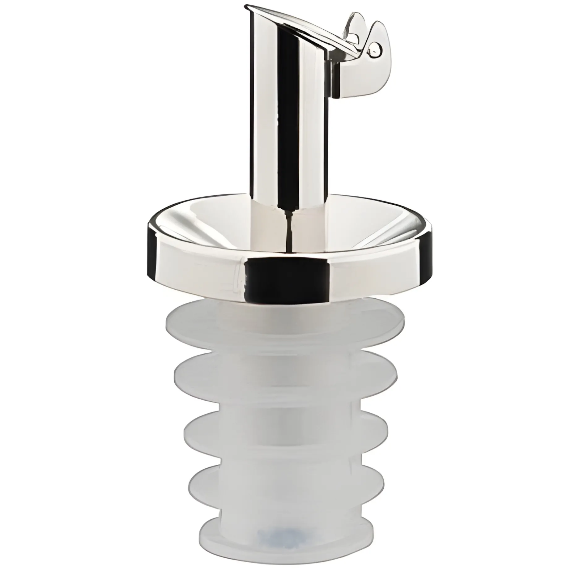 Der speziell auf Essig abgestimmte Ausgießer mit Silikonstopfen hat ein extra dünnes Gießrohr aus Edelstahl zum feinen Dosieren. Das Röhrchen ist mit einer kleinen Deckelklappe und einem Rückfluss-System ausgestattet, das herunterlaufende Tropfen in die Flasche zurückleitet.